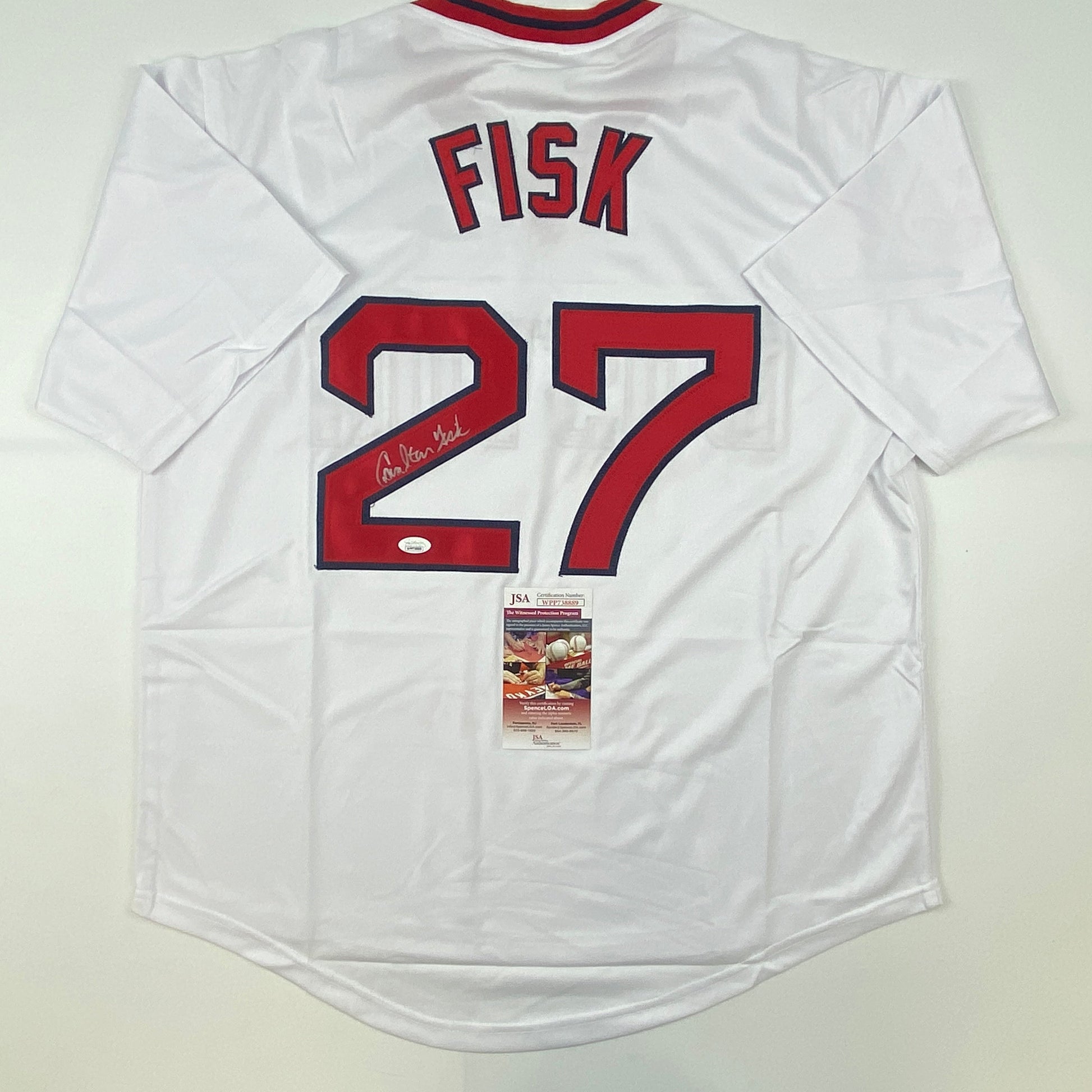 Autographed/Signed Carlton Fisk Boston White Baseball Jersey JSA COA