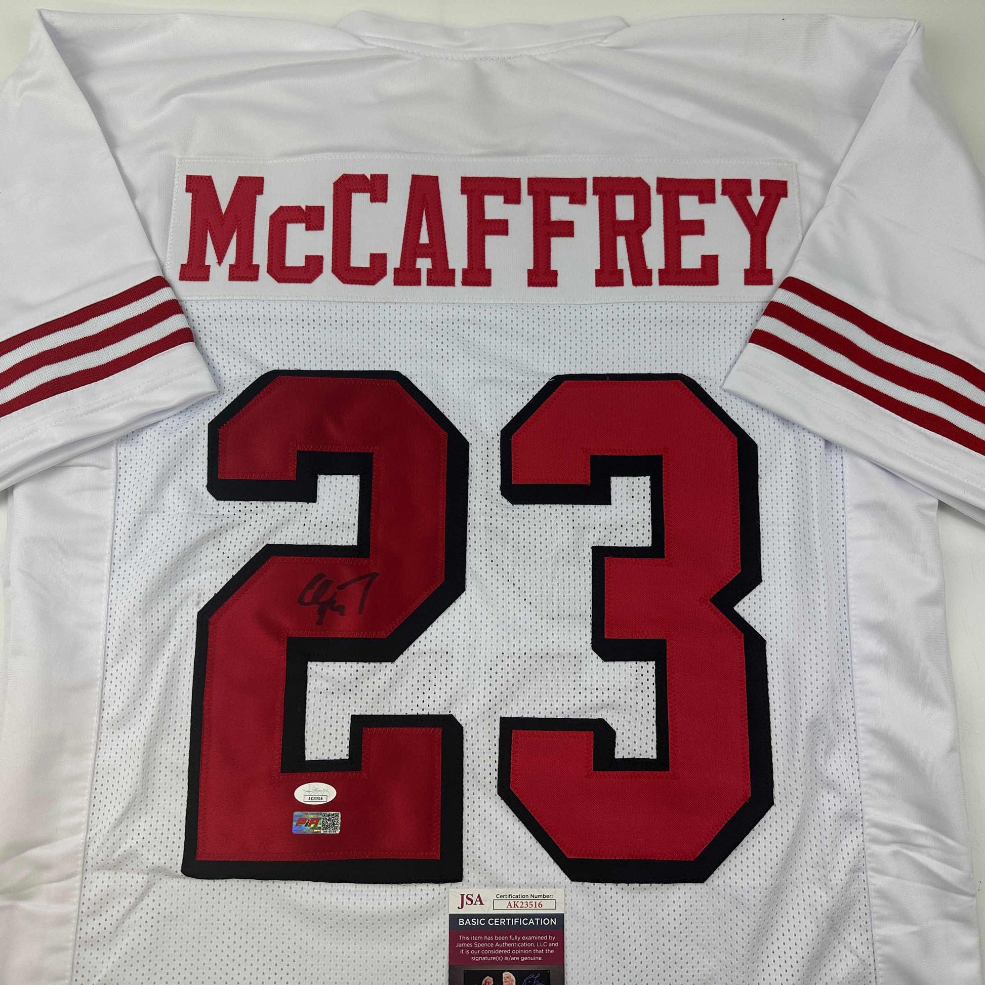Autographed/Signed Christian McCaffrey San Francisco White Alternate Football Jersey JSA COA