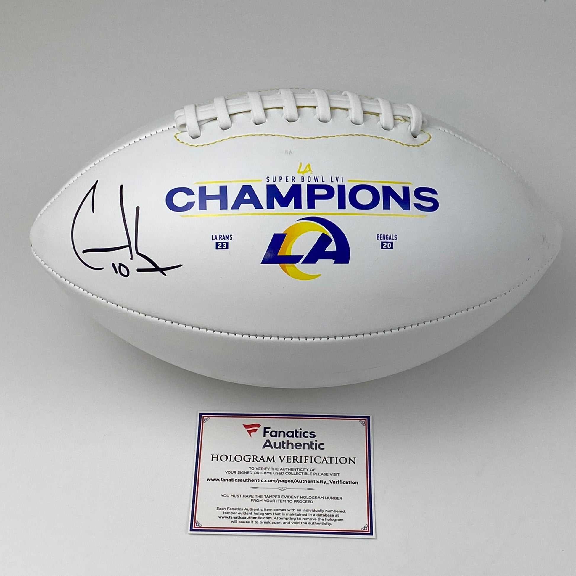 Autographed/Signed Cooper Kupp Super Bowl LVI Champions Los Angeles Rams Full Size FS F/S White Panel Logo Football Fanatics COA