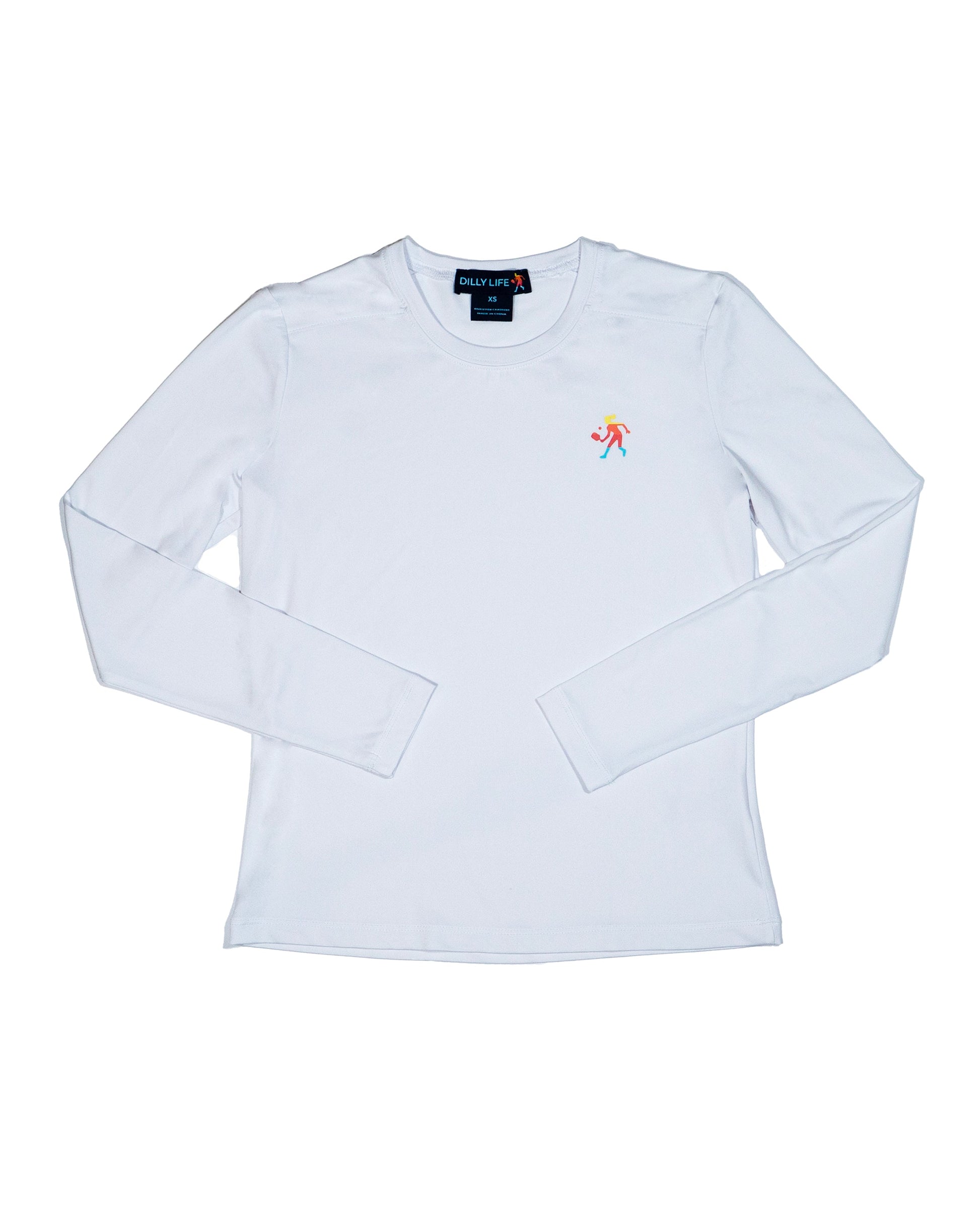 Introducing our Women's Performance Long Sleeve Crewneck, the go-to option for sun-drenched pickleball matches! Offering UPF40 UV Sun Protection, this shirt ensures you stay shielded from harmful rays during your matches. Crafted from a premium blend of 98% performance polyester and 2% spandex, it features advanced moisture-wicking technology, keeping you cool and comfortable even during extended play. Elevate your pickleball experience with our Women's Performance Long Sleeve Crewneck, designed to keep you protected and performing at your best throughout the day.