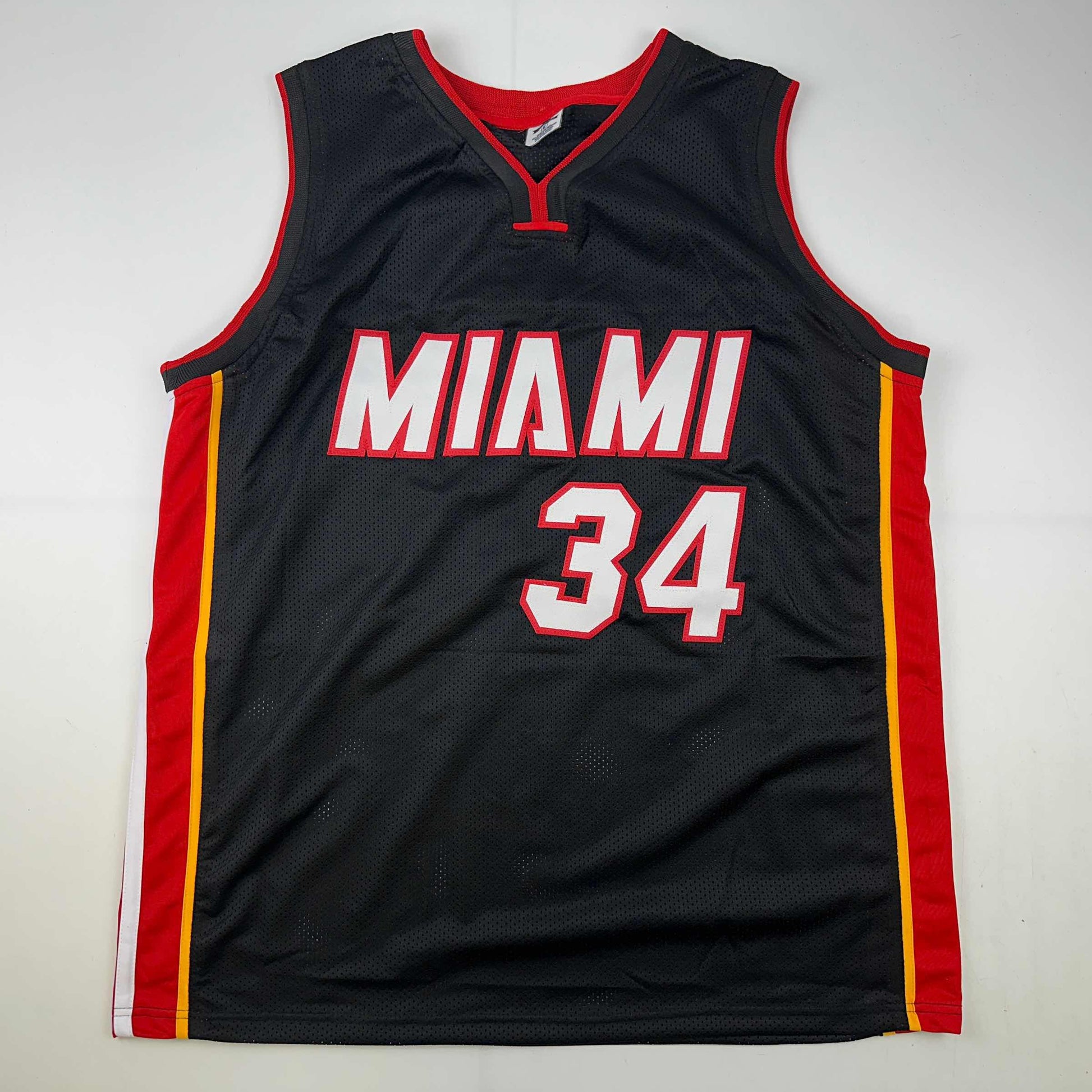 Autographed/Signed Ray Allen Miami Black Basketball Jersey Beckett BAS COA