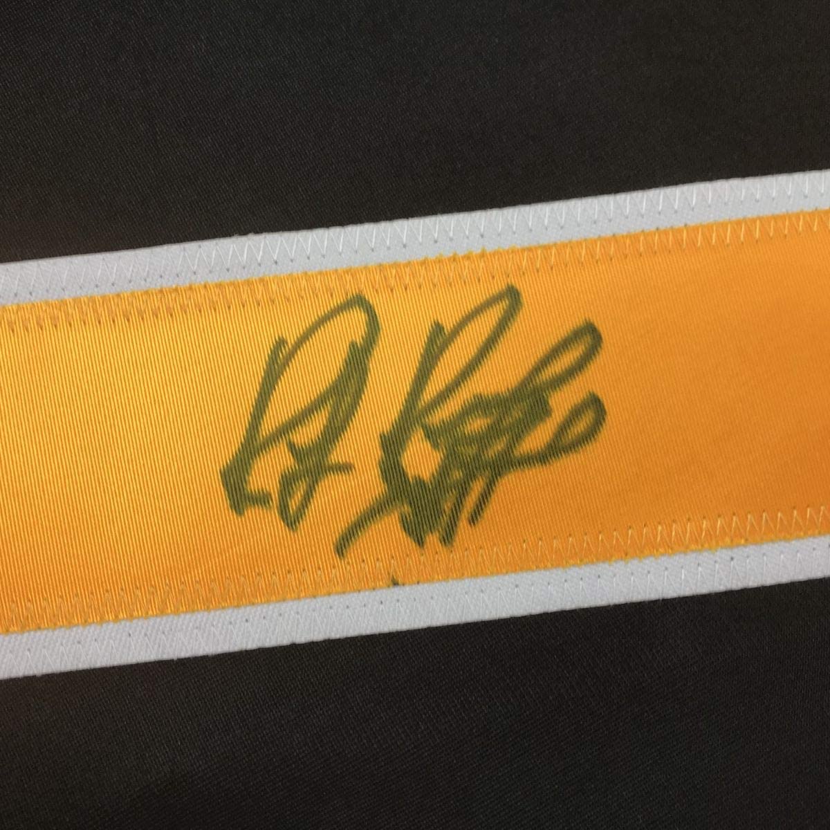 Jersey has no brand names or logos. This is a custom jersey and was not manufactured by or in any manner associated with any professional sports league or manufacturer. This custom jersey carries no professional sports league designation. The item is intended to be an autographed collectible. The custom jersey displays the name and number of the player. This item in no way is affiliated with or connected to any professional sports organization. Size is XL.