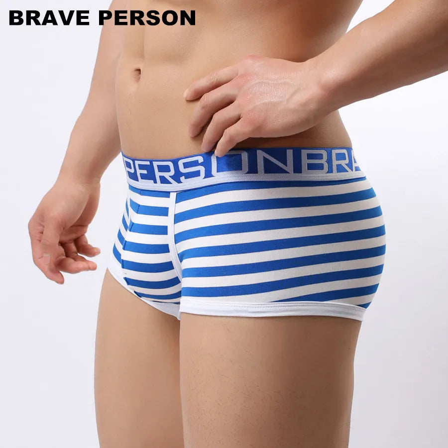 BRAVE PERSON Male Panties Men Underwear Boxers Cotton Underwear Sexy Striped Man Boxer Shorts Underpants B1155
