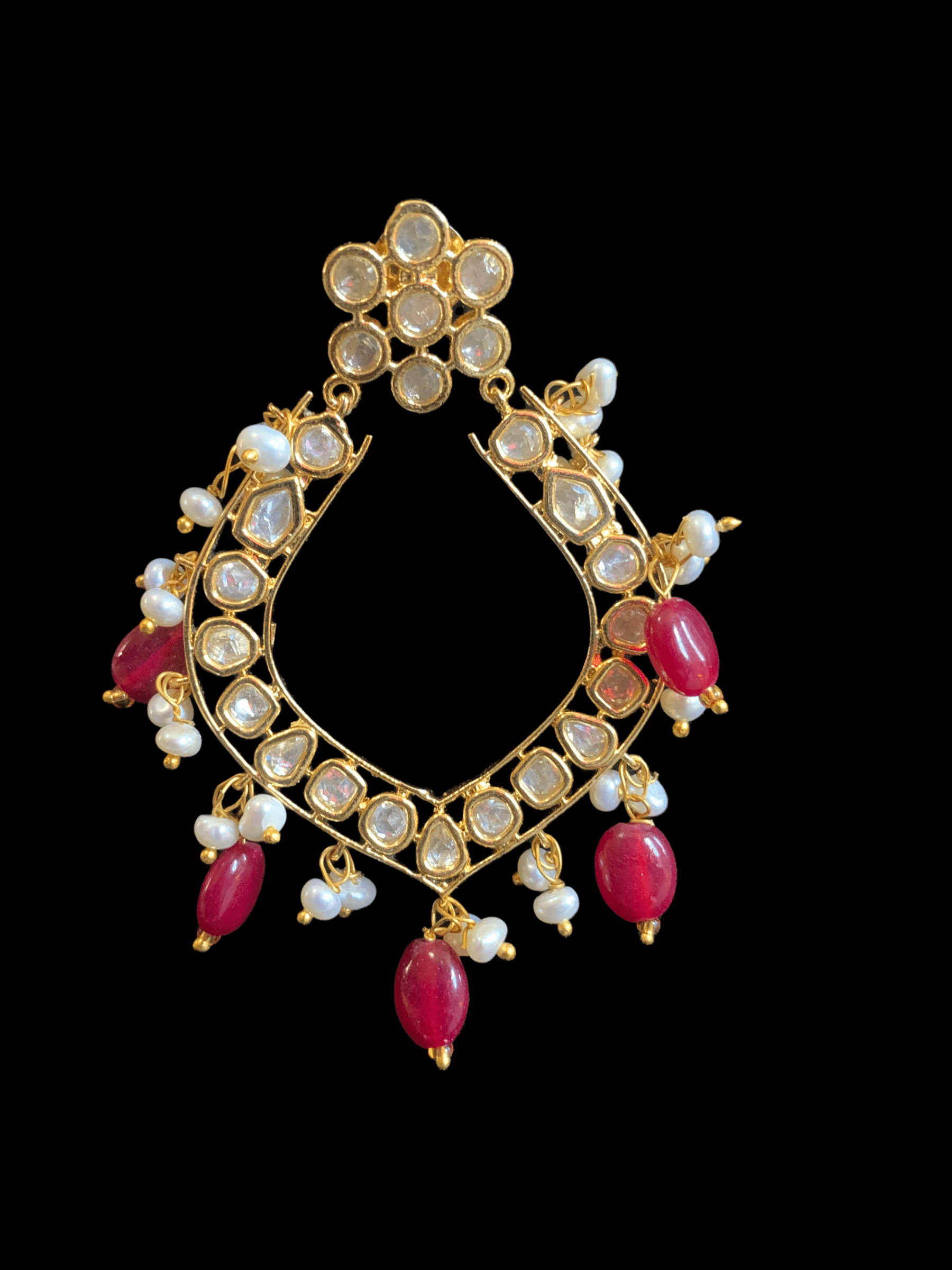 DER109 Elara polki earrings in fresh water pearls- ruby ( READY TO SHIP )