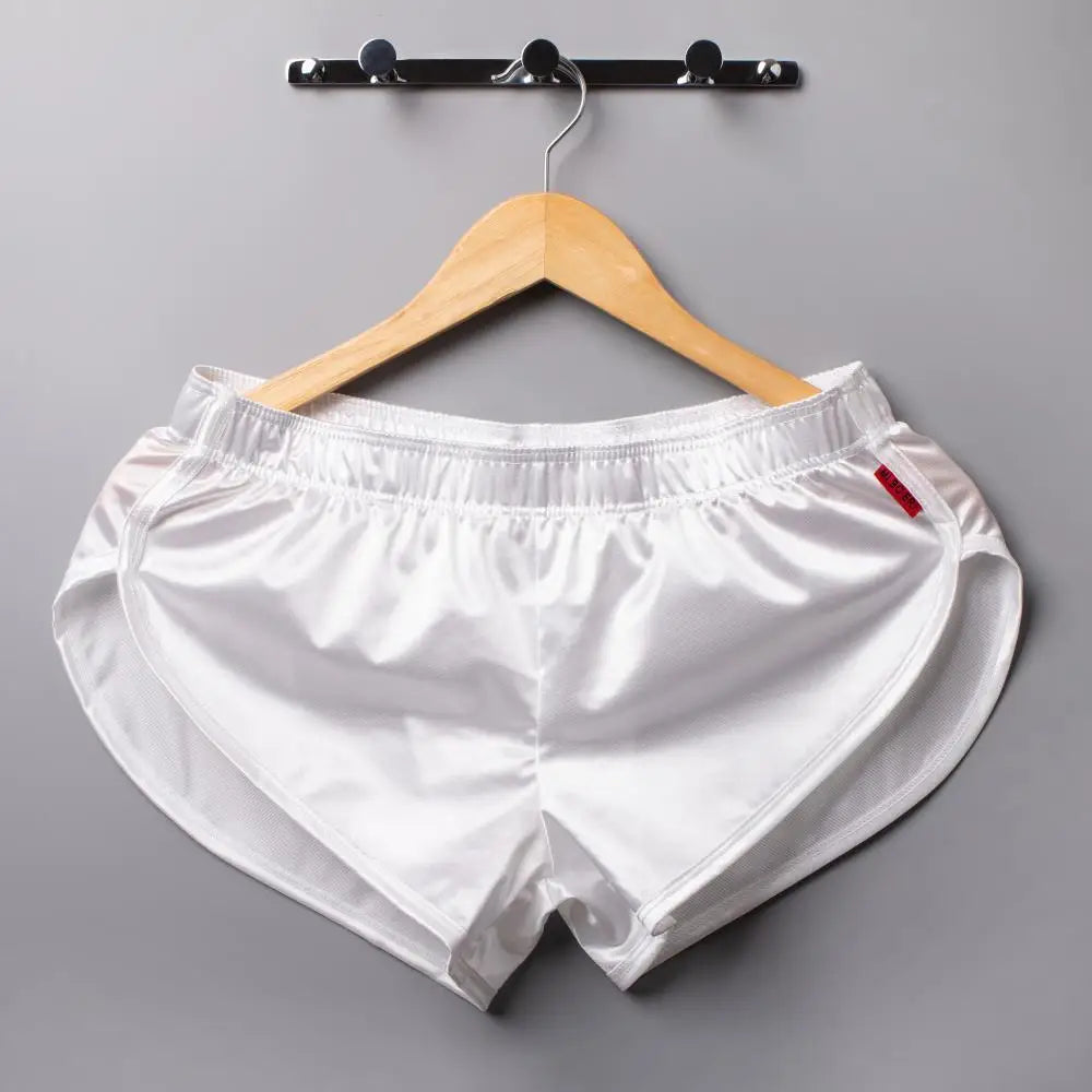 Mens Sexy Pajamas Boxer Shorts Smooth Silk Underwear Men Sleep Bottoms Homewear Lounge Shorts Male Panties Boxers