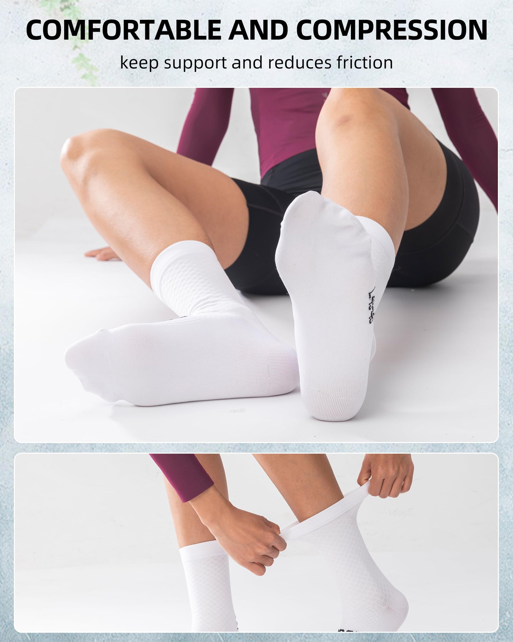 - Lightweight and Comfortable:Enjoy the lightweight and comfortable feel of our road cycling socks. These bicycle socks provide a soft, skin-friendly experience that reduces fatigue and allows for unrestricted movement during long rides.