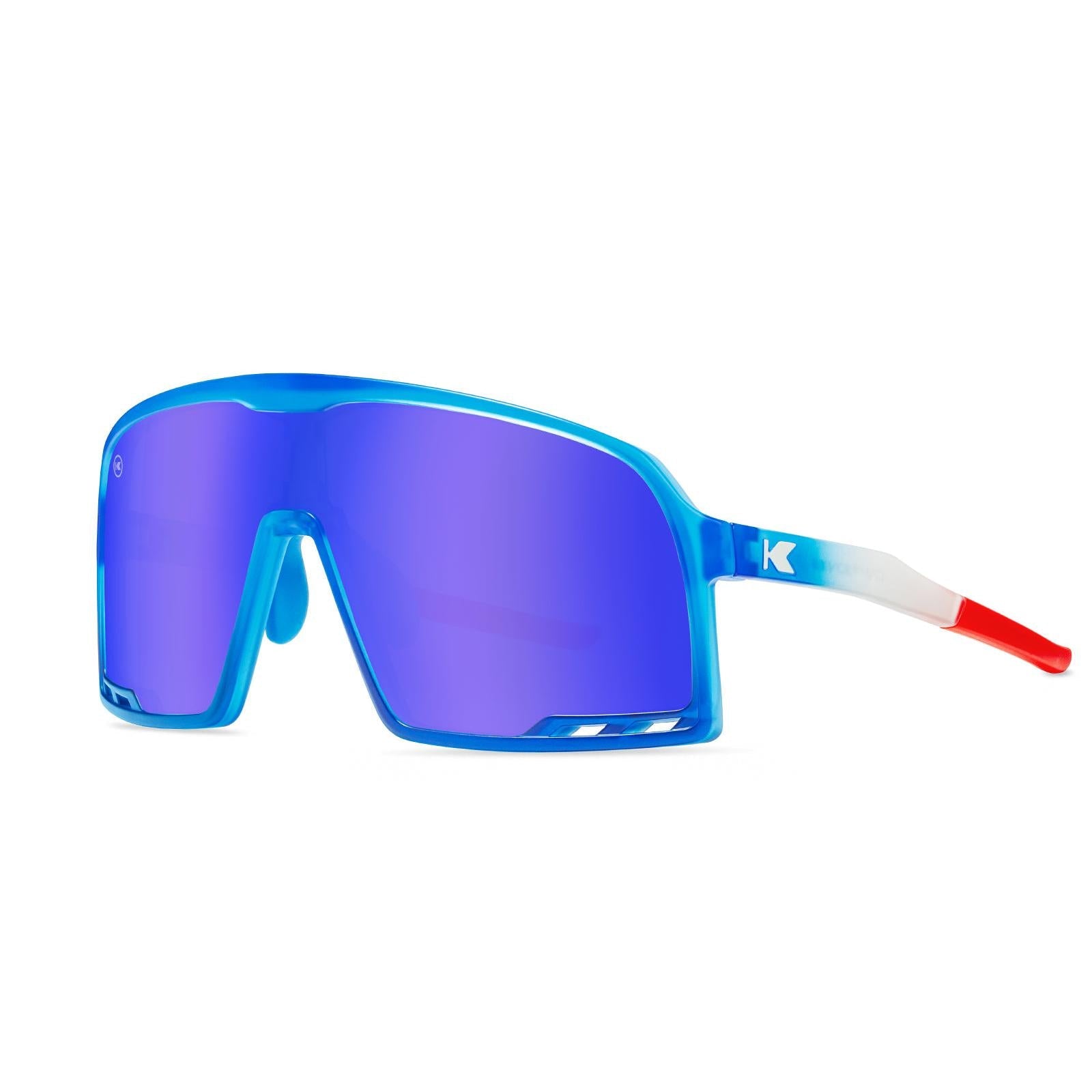Picture yourself on your way to the summer’s hottest cookout, complete with jetskis and your favorite jams. Even if summer fun feels far away, our Rocket Pop Campeones come in clutch to bring you the same vibe in a lively pair of wraparound sunglasses. Matte fronts feature a fade from sapphire to navy with a subtle nose grip to boot, as well as red ear grips for extra fuel for the fire. Our moonshine lenses, complete with UV400 protection and impact resistance, are the ultimate flex. Let the festivities begin!