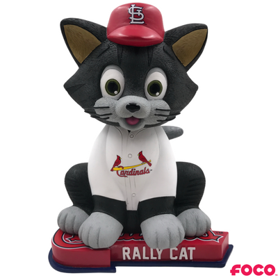 This bobblehead features the St. Louis Cardinals Rally Cat. On August 9th, 2017, the Rally Cat ran onto the outfield at Busch Stadium. Moments after a Cardinals' grounds crew member captured the rally cat, Yadier Molina hit a grand slam to take the lead. It was produced exclusively for the National Bobblehead Hall of Fame and Museum and is officially licensed by the St. Louis Cardinals and MLB.
