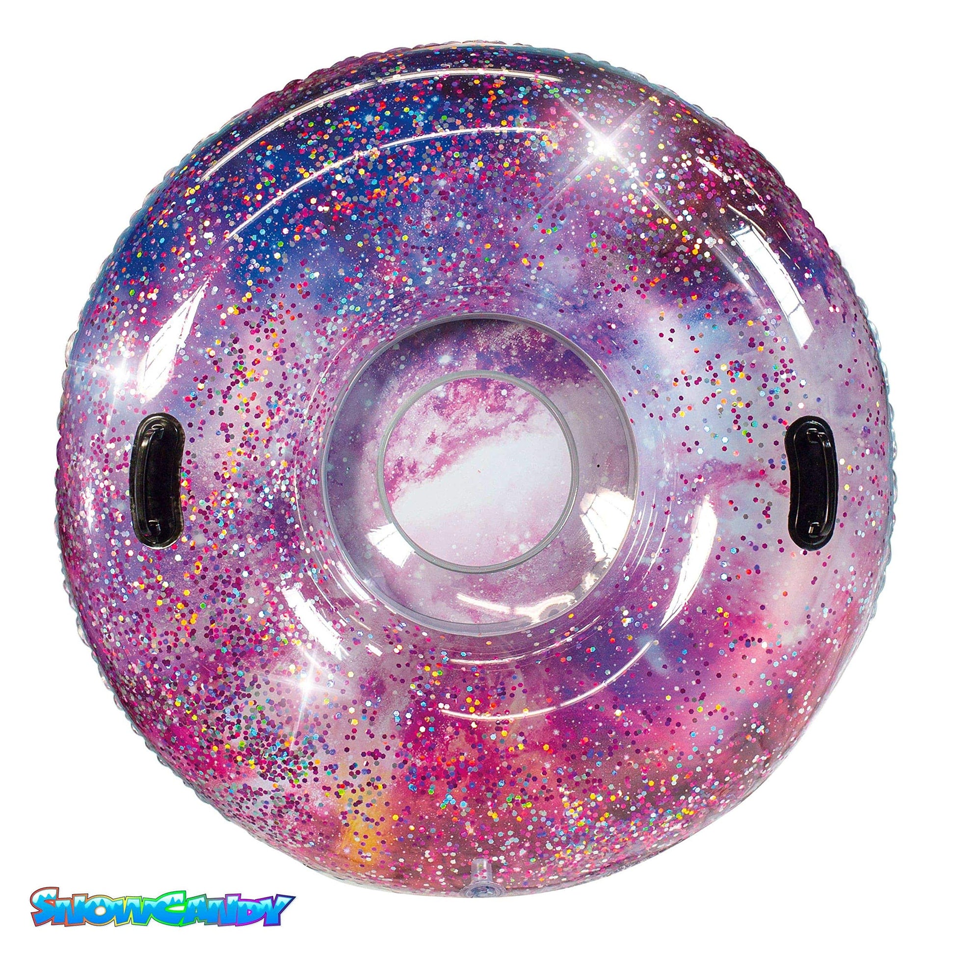 Winter fun Inflatable Glitter Filled Pink Galactic Snow Tube. Jumbo 48 inch