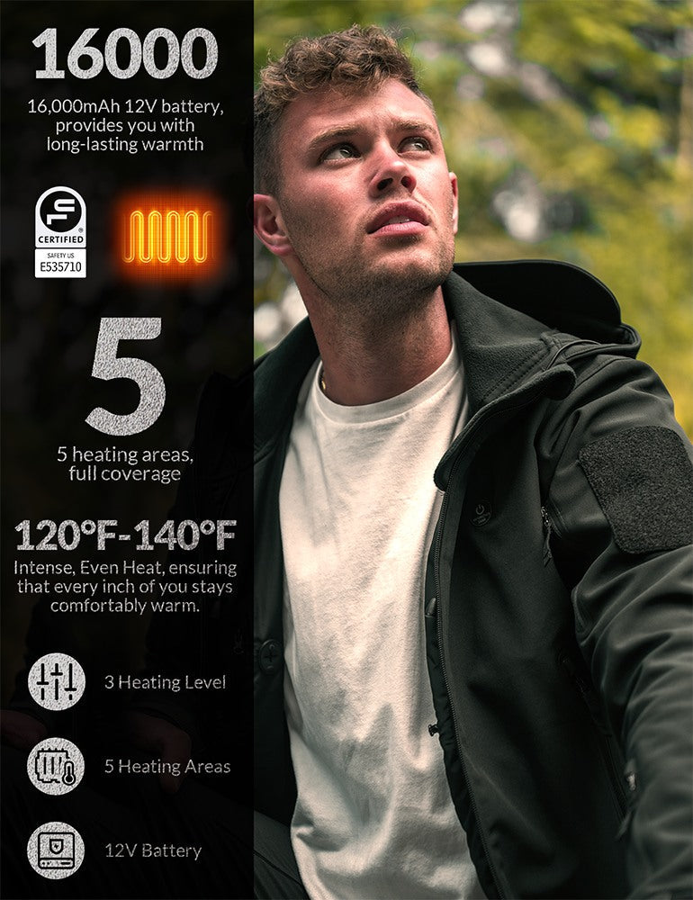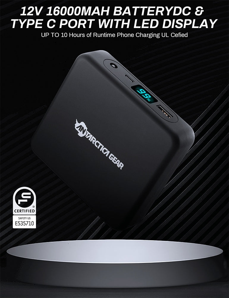 🔥CARBON FIBER HEATING ELEMENTS: Heat quickly in 3 seconds, 5 carbon fiber heating elements generate heat across core body areas (front, arm area, and back) boosting your core body heat and keeping you warm. 12V Huge Capacity 16000mAh UL-Certificated power bank(packaged) No need to worry about battery life and temperature.