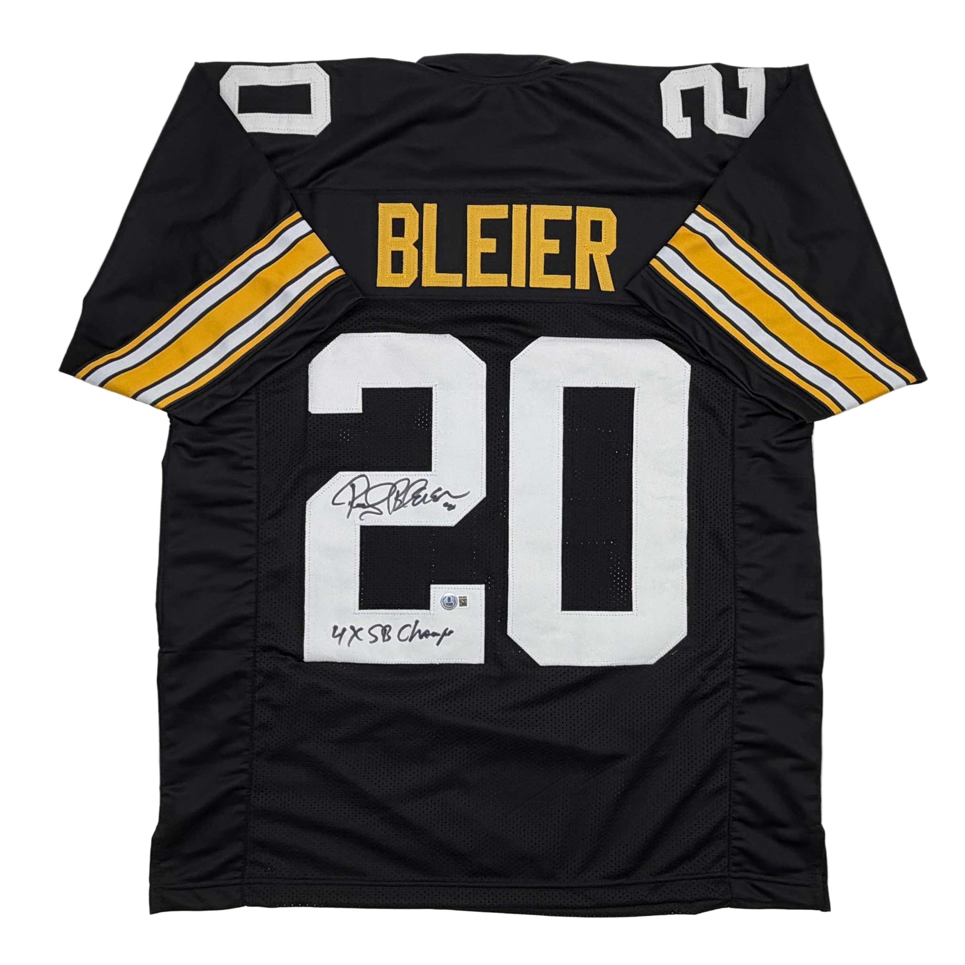 Autographed/Signed Rocky Bleier 4x SB Champ Pittsburgh Black Football Jersey Beckett BAS COA