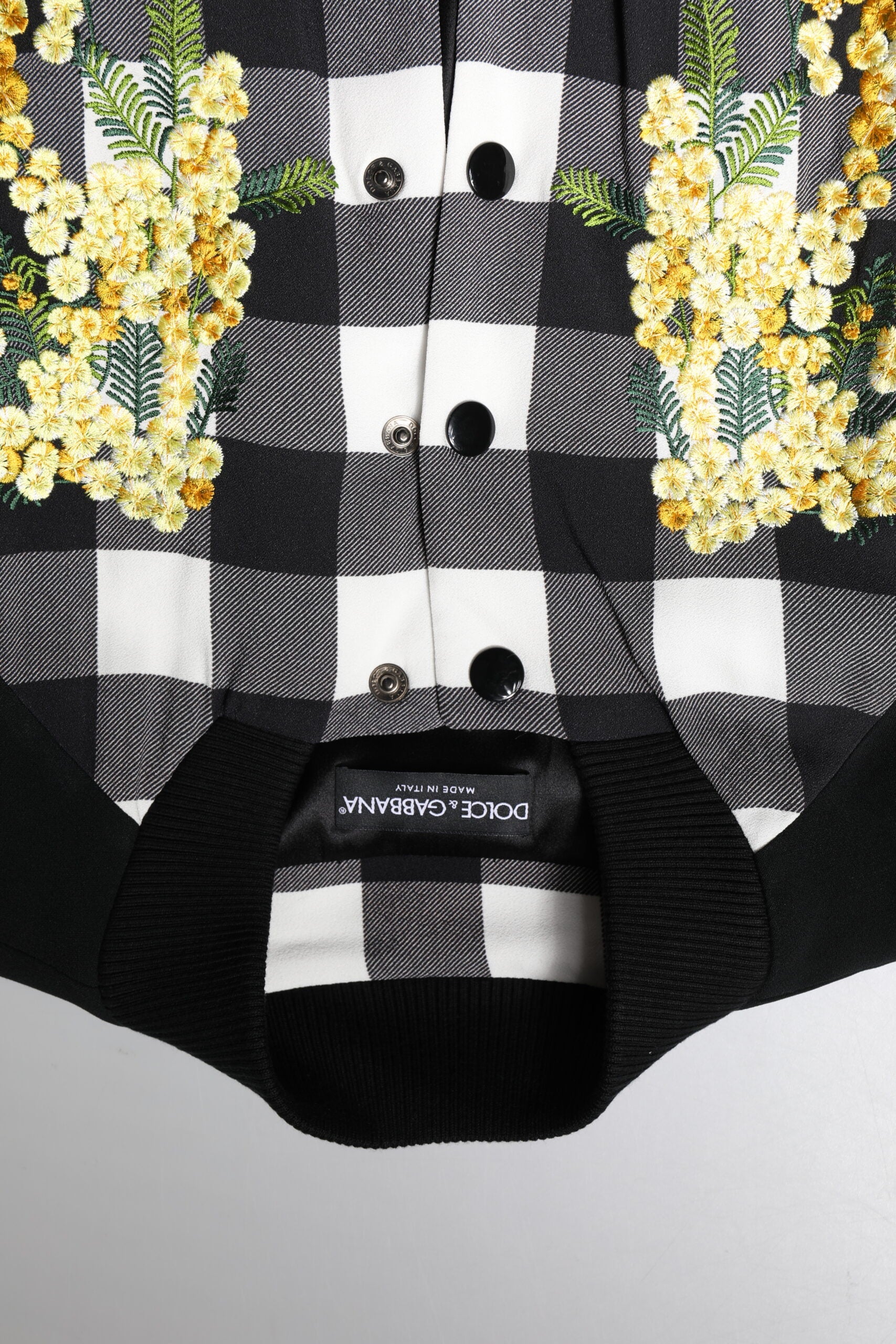 Dolce & Gabbana Black White Check Floral Button Down Jacket