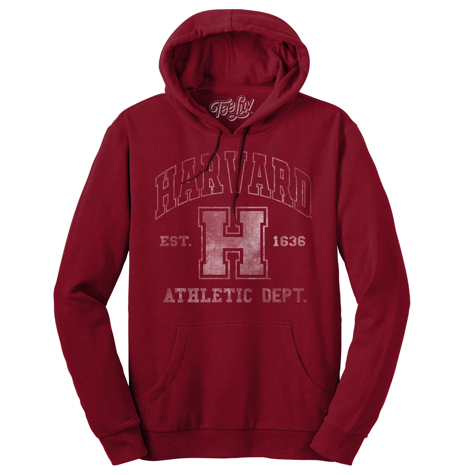 We’ve paid tribute to Harvard's athletic prowess with a graphic hoodie of its very own featuring the classic Harvard "H" logo and "Athletic Dept" text. To complete the retro feel on this Harvard sweatshirt - we’ve heavily distressed the graphic and printed it on a soft, Crimson Heather hoodie. Perfect for showing a little school spirit!