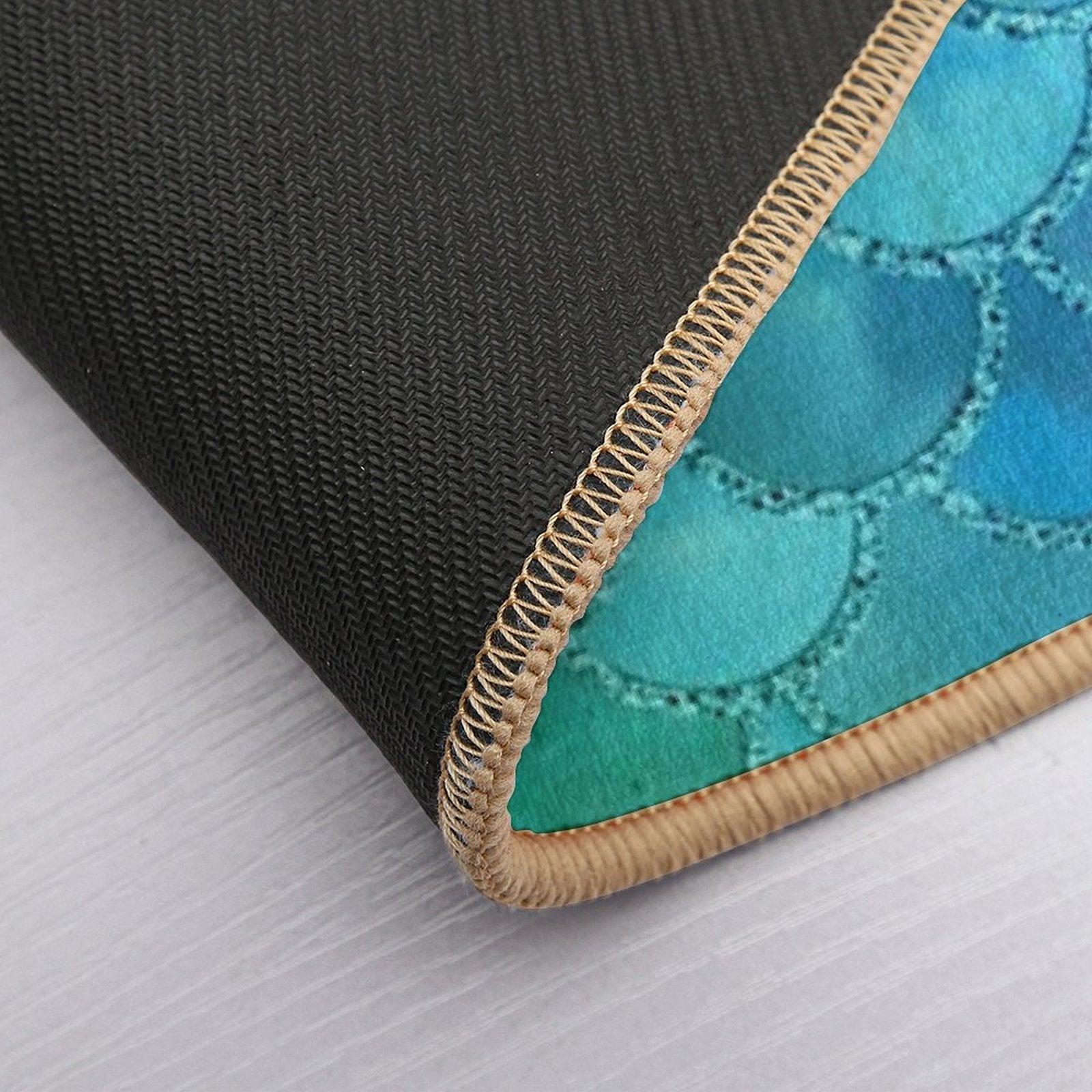 • Non-slip rubber backing grips floors securely, ideal for Turquoise Green And BLue Watercolor Mermaid Scales Mat placements on tiles, wood, or marble.
