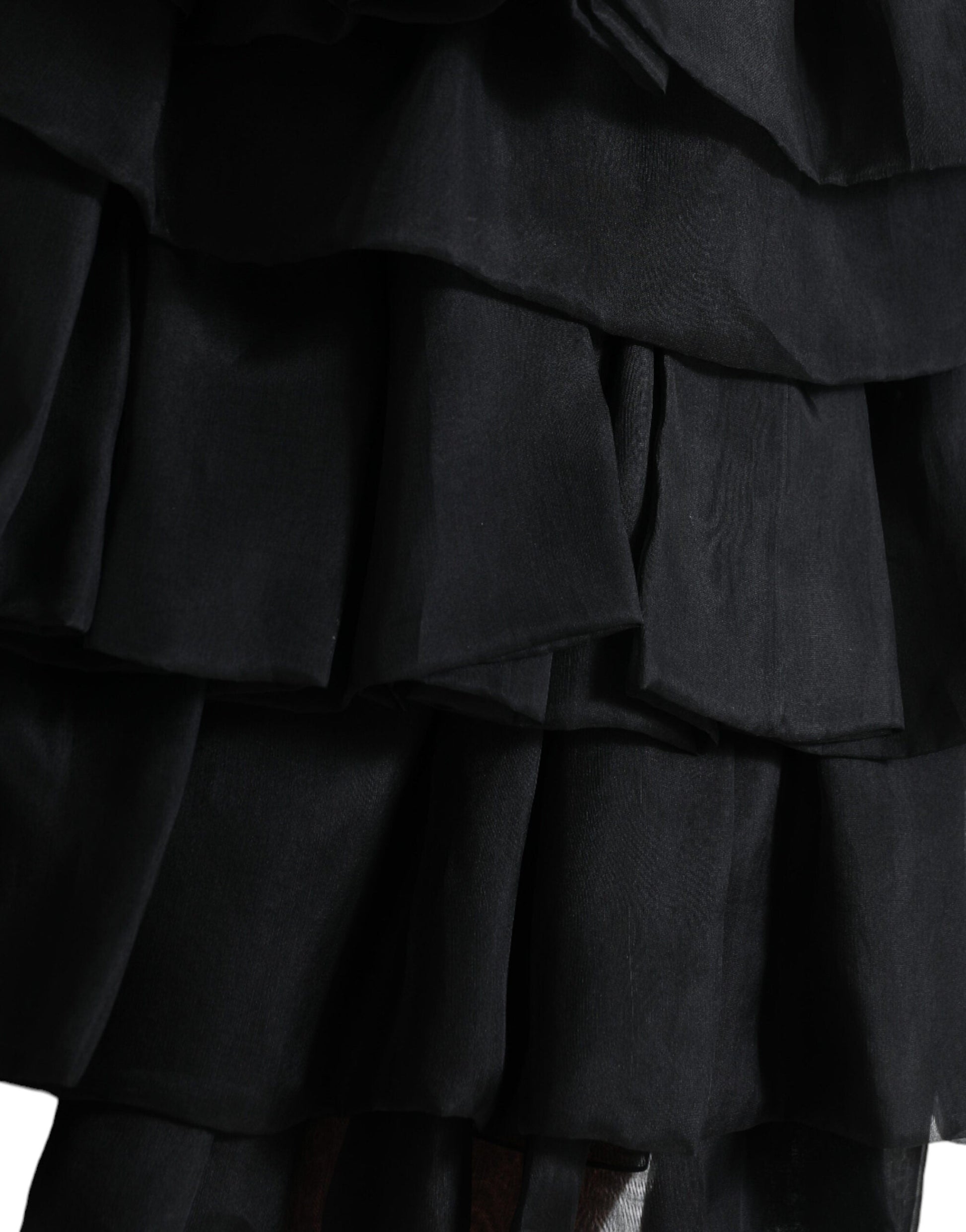Dolce & Gabbana Black Tiered Aline High Waist Silk Mini Skirt
