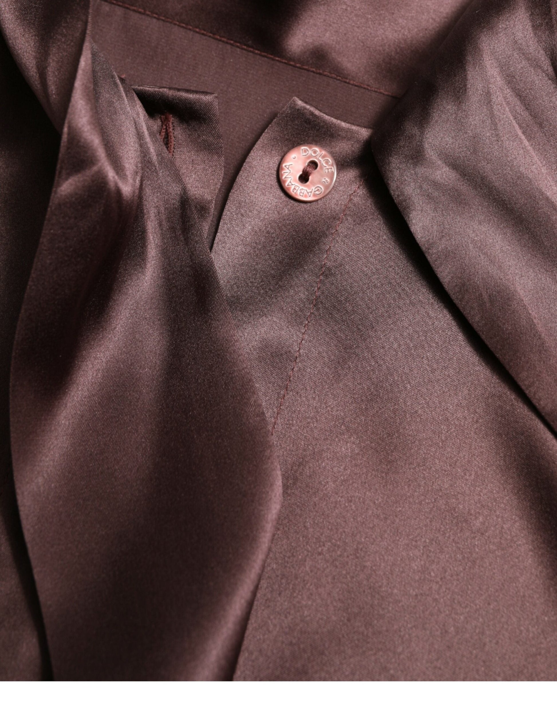 Dolce & Gabbana Brown Silk Ascot Collar Long Sleeve Blouse Top