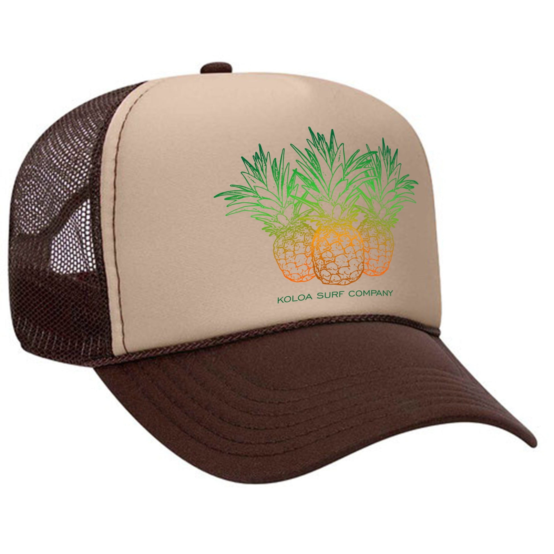 The Koloa Tres Piñas Foam Trucker Hat is unforgettable and affordable. This 5-panel hat is very unique, making you stand out amongst the crowd.