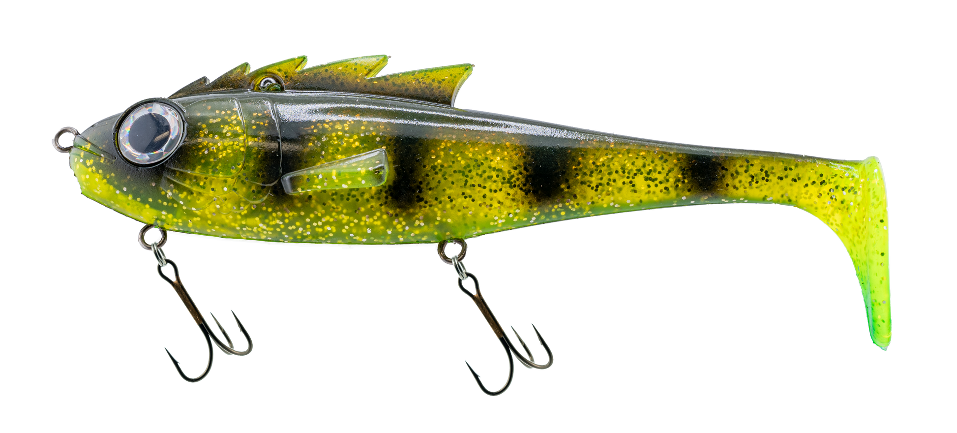 Freedom, strength, power, and a healthy dose of rebellion are the essence of the Mustang. Designed by Steven Paul and the team at Livingston Lures, the Mustang breaks the mold of conventionality, ushering in a new era of high-performance predator swimbaits. And just like the American muscle cars and the ponies of the Southwest, the Mustang is adorned with colors that inspire. The Mustang’s color palette blends hyperrealism with a touch of the surreal, capturing not only the eye of the angler but, more importantly, the attention of trophy predators. While a picture is worth a thousand words, the technology encapsulated in the Mustang is a song worth singing. Inside the Mustang is Livingston Lures’ E.B.S. technology, which produces the sounds of baitfish. This makes the Mustang the only predator swimbait that not only looks but also sounds real.
