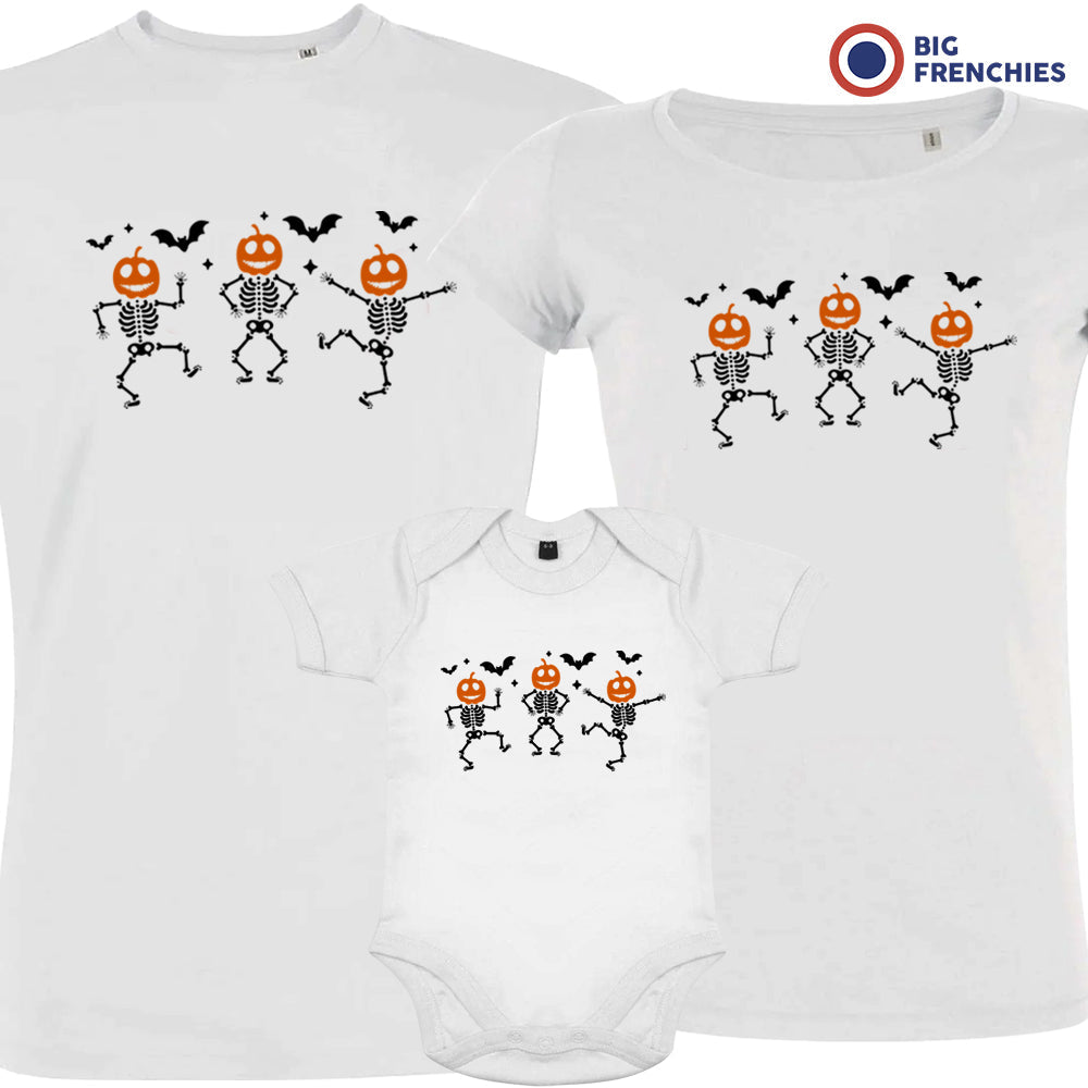 Pumpkin Skeleton Dance Halloween Matching Organic Cotton Family Set (Set of 3)