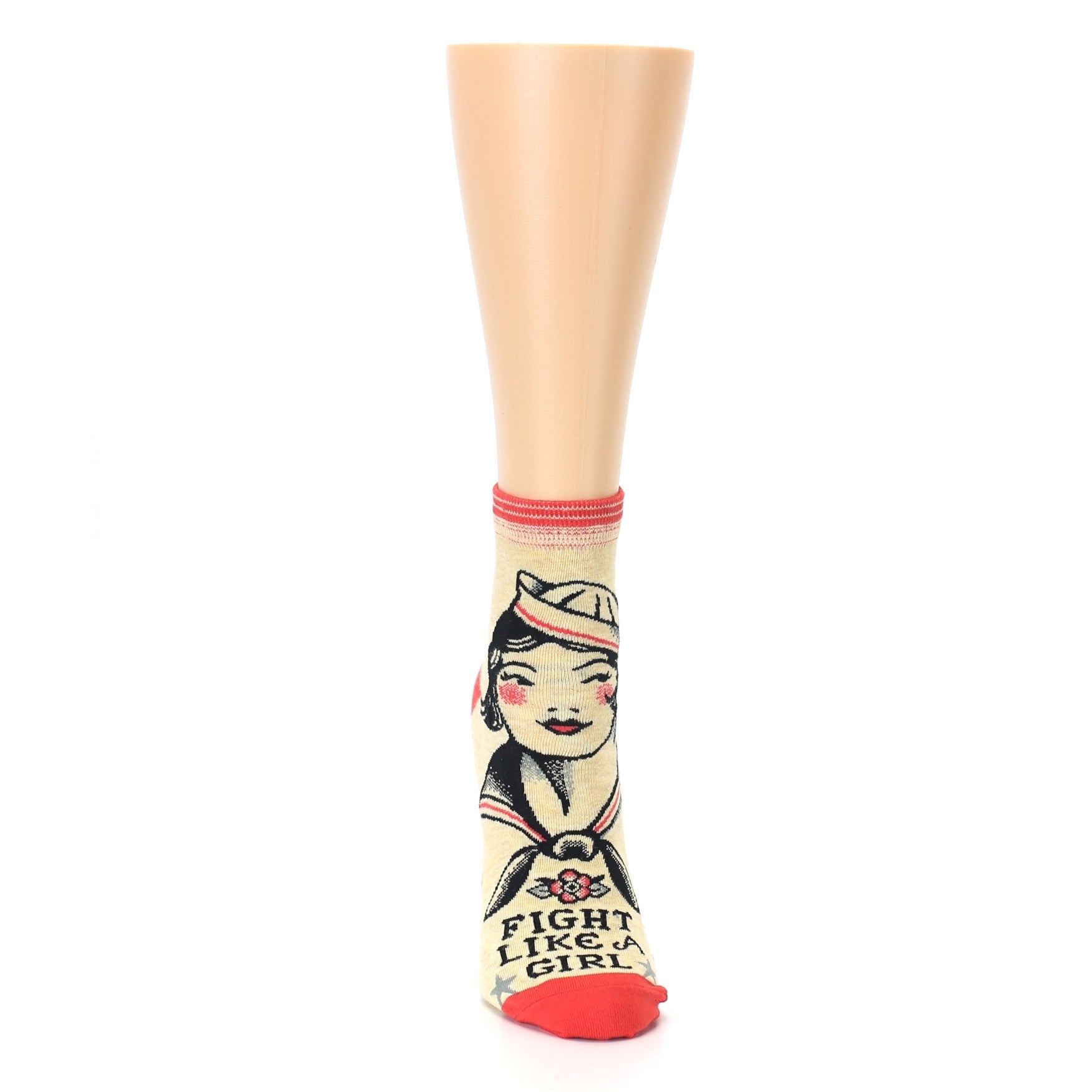 Tan Fight Like A Girl Socks - Women's Novelty Ankle Socks