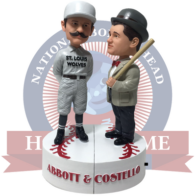 This bobblehead set features Abbott and Costello performing their iconic "Who's on First?" skit. The talking bobbleheads which include audio clips of the duo performing "Who's on First?" mark the first bobbleheads featuring Abbott and Costello.