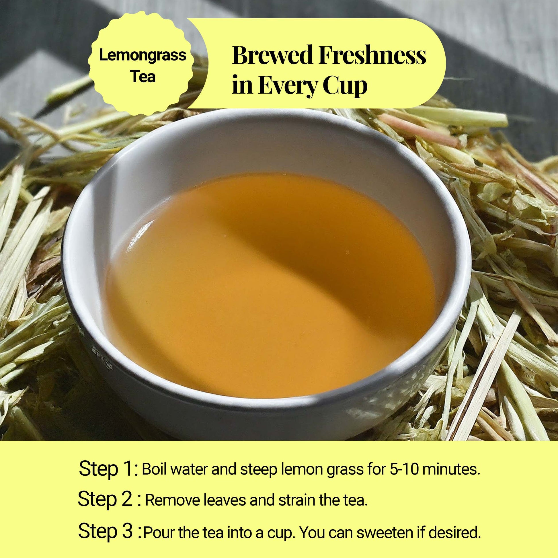 Sourced from lush lemongrass farms, each batch is selected for quality, size, and aroma — then gently dried without additives or preservatives.