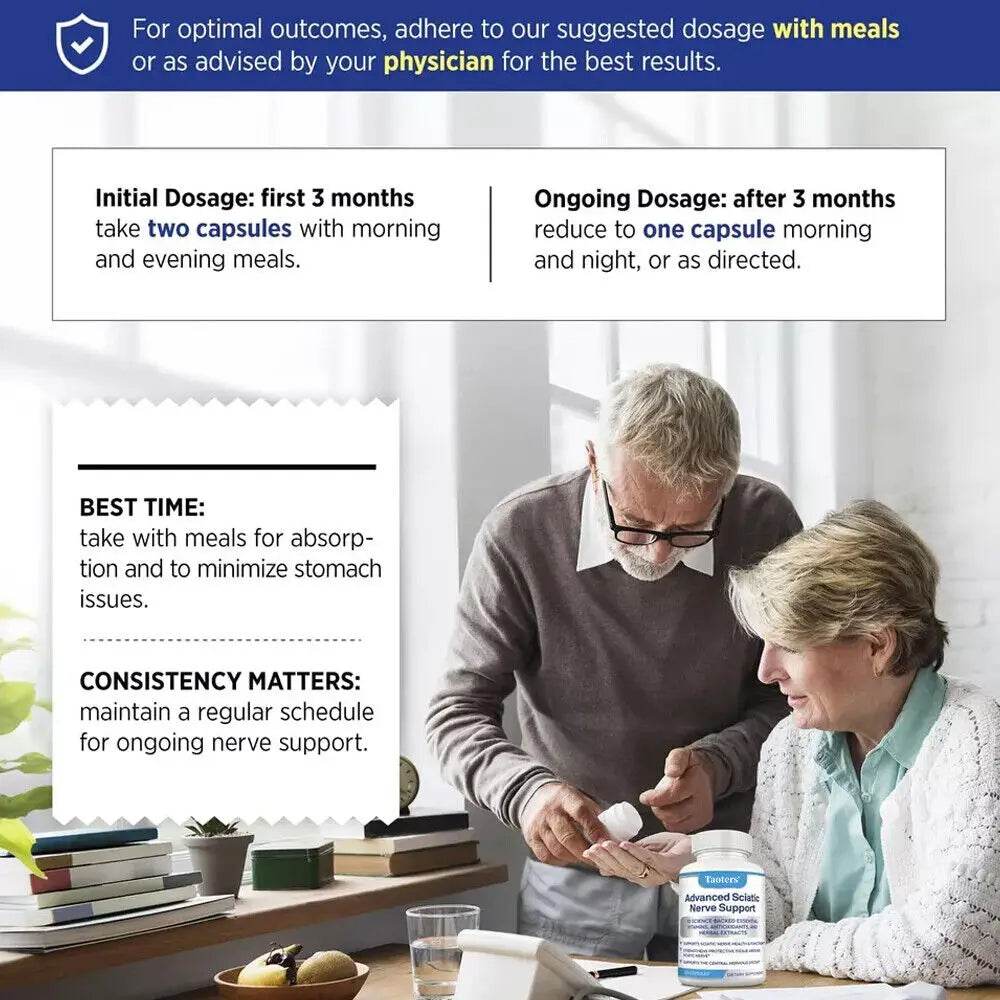 The supplement is expertly formulated with B vitamins, alpha-lipoic acid, and benfotiamine to provide holistic support for sciatic nerve health and function. 12-in-1 Powerful Formula: A synergistic blend of 12 powerful ingredients relieves sciatica discomfort and promotes nerve health and overall well-being. Multi-Phase Benefits: Within weeks, you'll witness a holistic approach: improved blood flow, maintenance of the protective myelin sheath, and the calming effects of a proprietary herbal blend. Long-Term Health: Expect lasting benefits such as improved sleep, increased energy levels, and mental clarity, paving the way for a more comfortable and fulfilling daily life. Features: Supports sciatic nerve health and function Strengthens the protective tissue surrounding the sciatic nerve Supports the central nervous system .