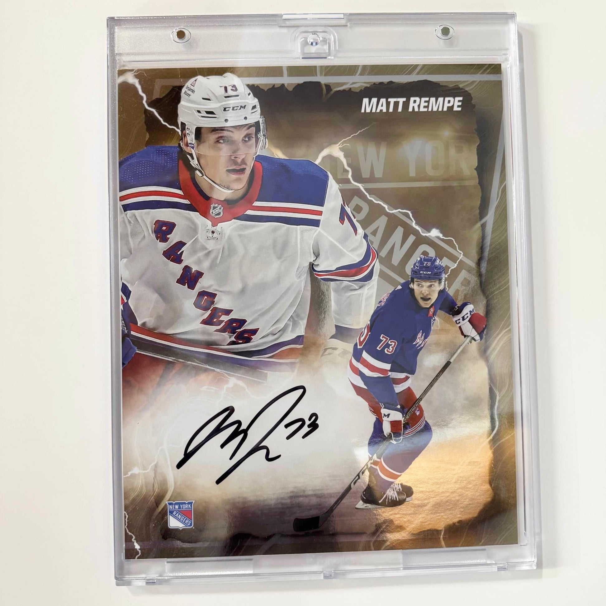 Autographed/Signed 2024 Under Wraps Emanate Matt Rempe New York Rangers Gold /50 8x10 Hockey Card Photo Fanatics COA