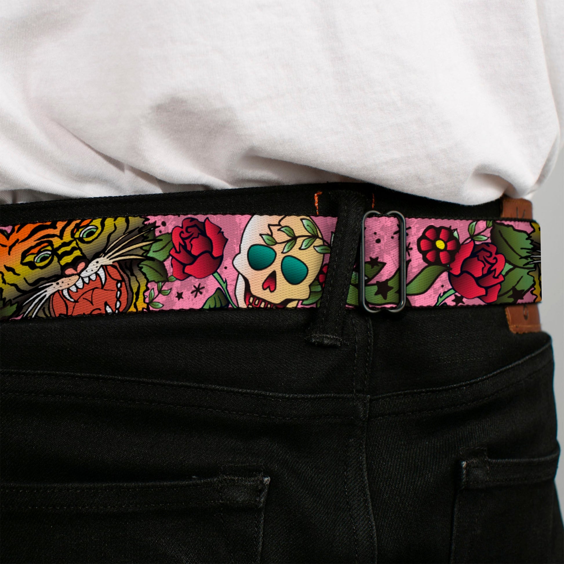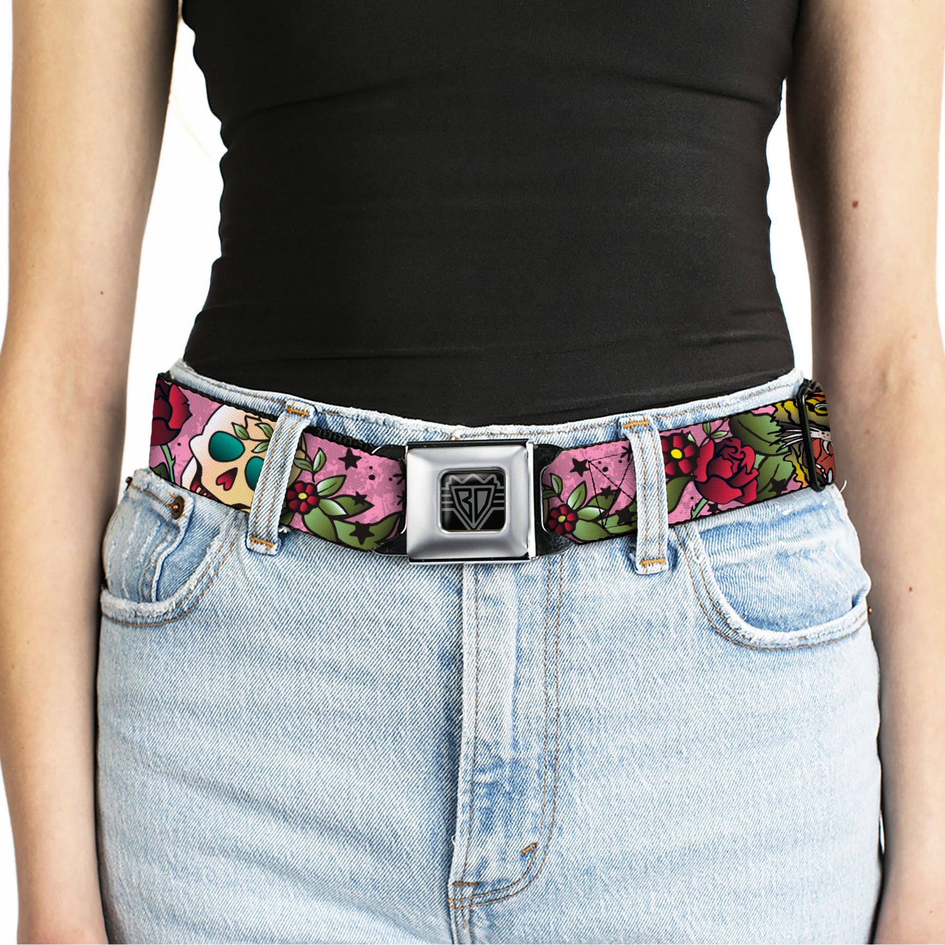BD Wings Logo CLOSE-UP Full Color Black Silver Seatbelt Belt - Death Before Dishonor Pink Webbing