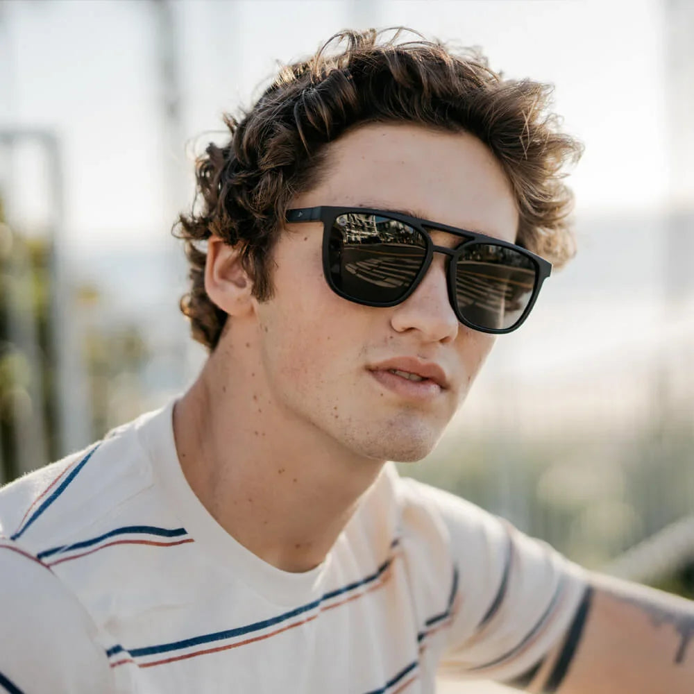 “Simply stylish” perfectly describes the vibe of our polarized Black on Black Brightsides sunglasses. Solid matte black frames remind people that you mean business, while impact resistance and UV400 polarized smoke lenses keep you ready to tackle any challenge. Efficiently store these retro black polarized sunglasses in the included pouch, so they’ll be at-the-ready for your next client meeting or lunch date.