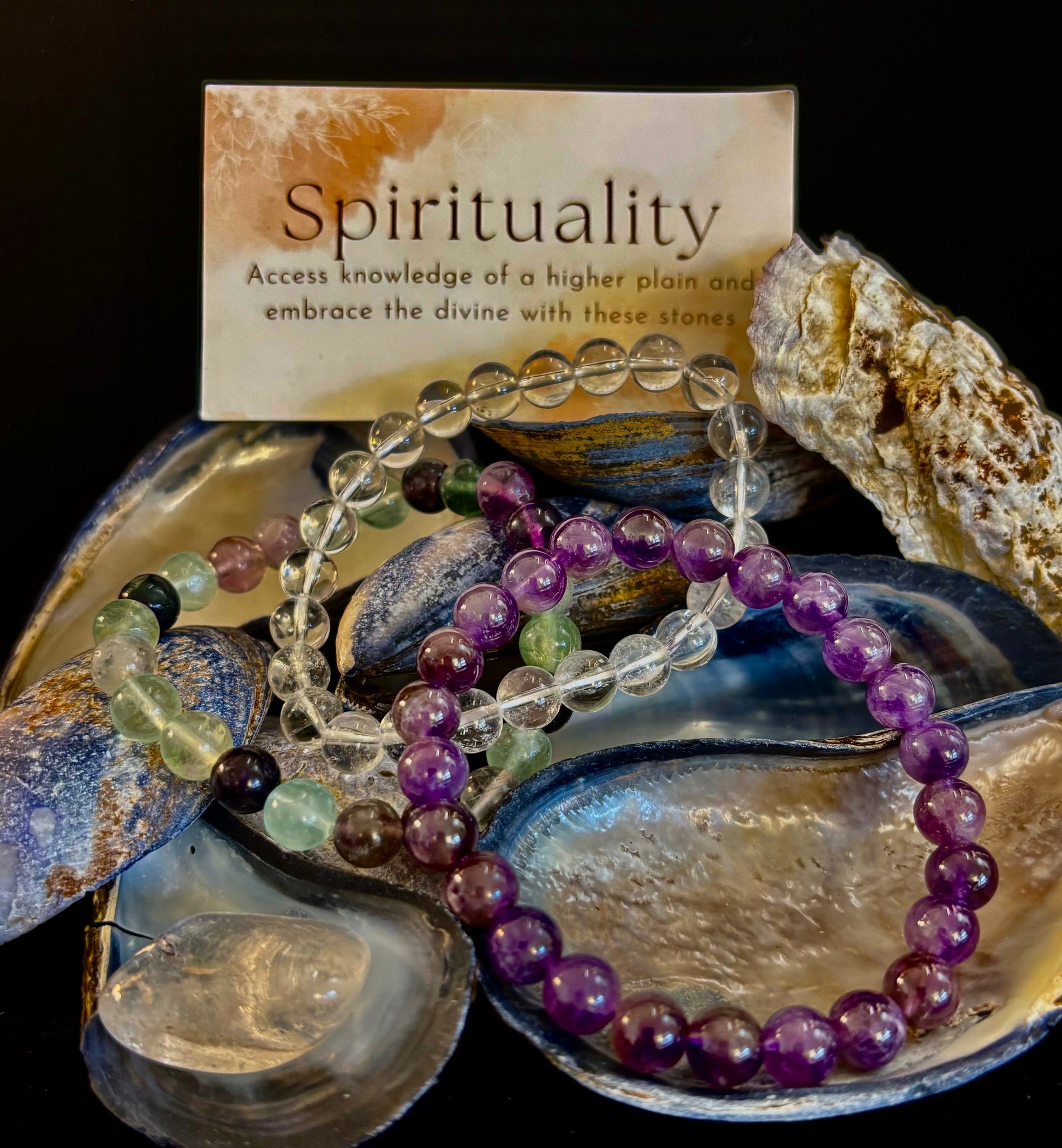 Each bracelet is intentionally chosen for its connection to spiritual growth and higher consciousness: