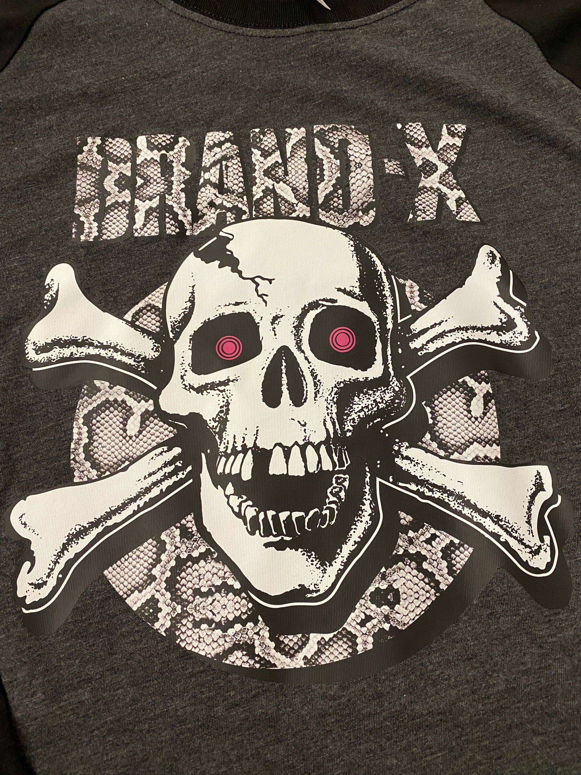 Brand-X SNAKESKIN Knucklehead on our badass 3/4 length sleeve two tone shirt. Made in the USA.
