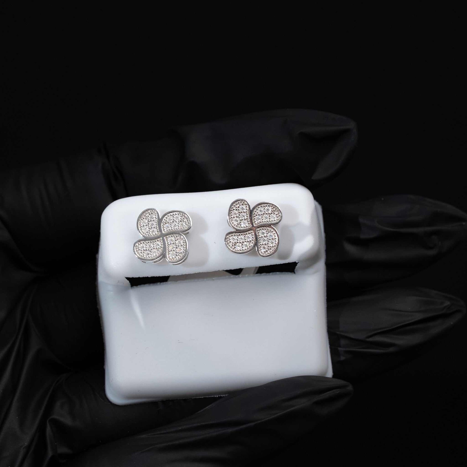 Moissanite Flower Stud Earrings 925 Sterling Silver Screw Back