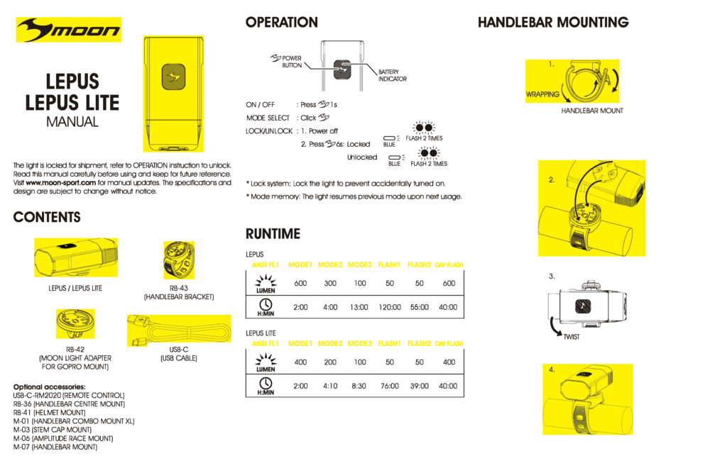 MOON LEPUS LITE C1 400LM Bicycle Headlight