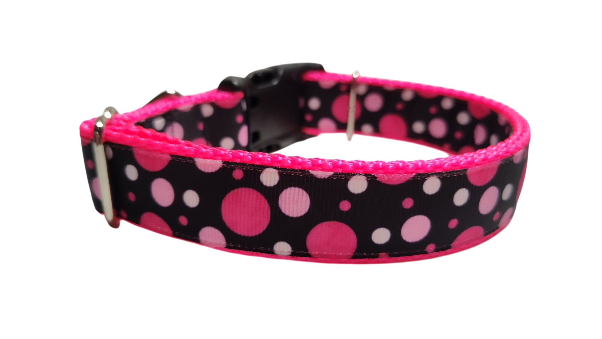 Pink Polka Dots dog collar on nylon webbing