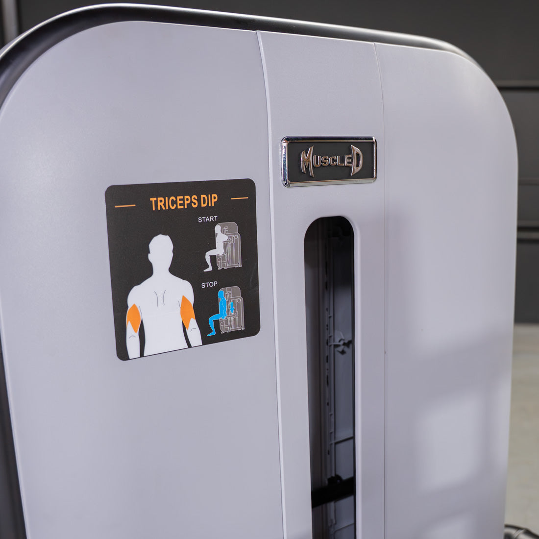 Maximize your triceps training with the Vogue Seated Dip / Triceps Press-Down by Muscle D Fitness. Engineered for commercial performance, this machine combines modern aesthetics with robust construction to deliver a premier upper-body workout experience.
