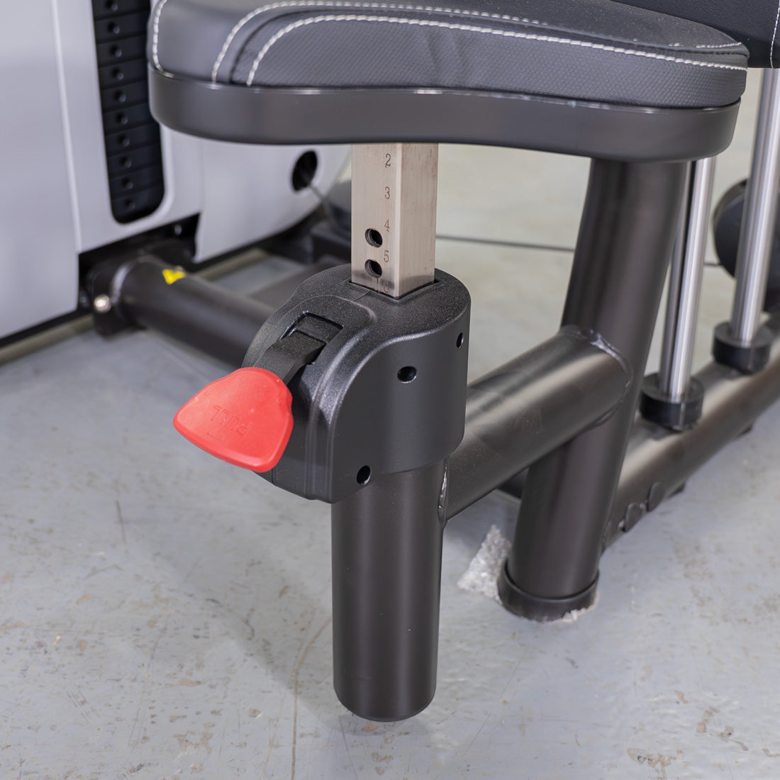 The gas-assisted seat adjustment and ergonomically contoured seat allow easy setup and precise positioning for every user. A double-stitched, commercial-grade upholstery provides lasting comfort and durability, even during intense sessions. The linear bearing system ensures fluid, stable motion, isolating the triceps for optimal muscle engagement.