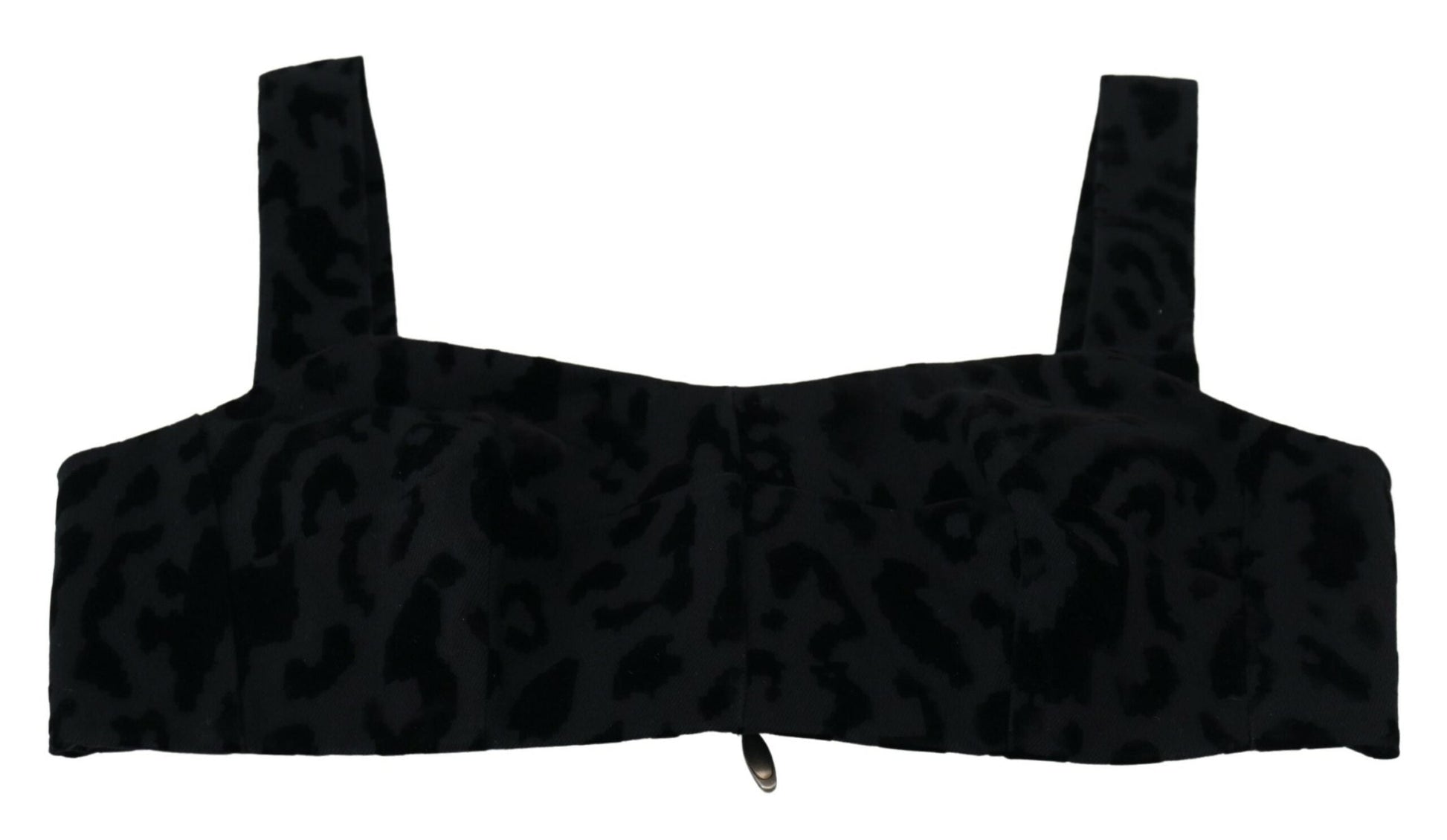 Dolce & Gabbana Black Leopard Cropped Bustier Corset Bra Top