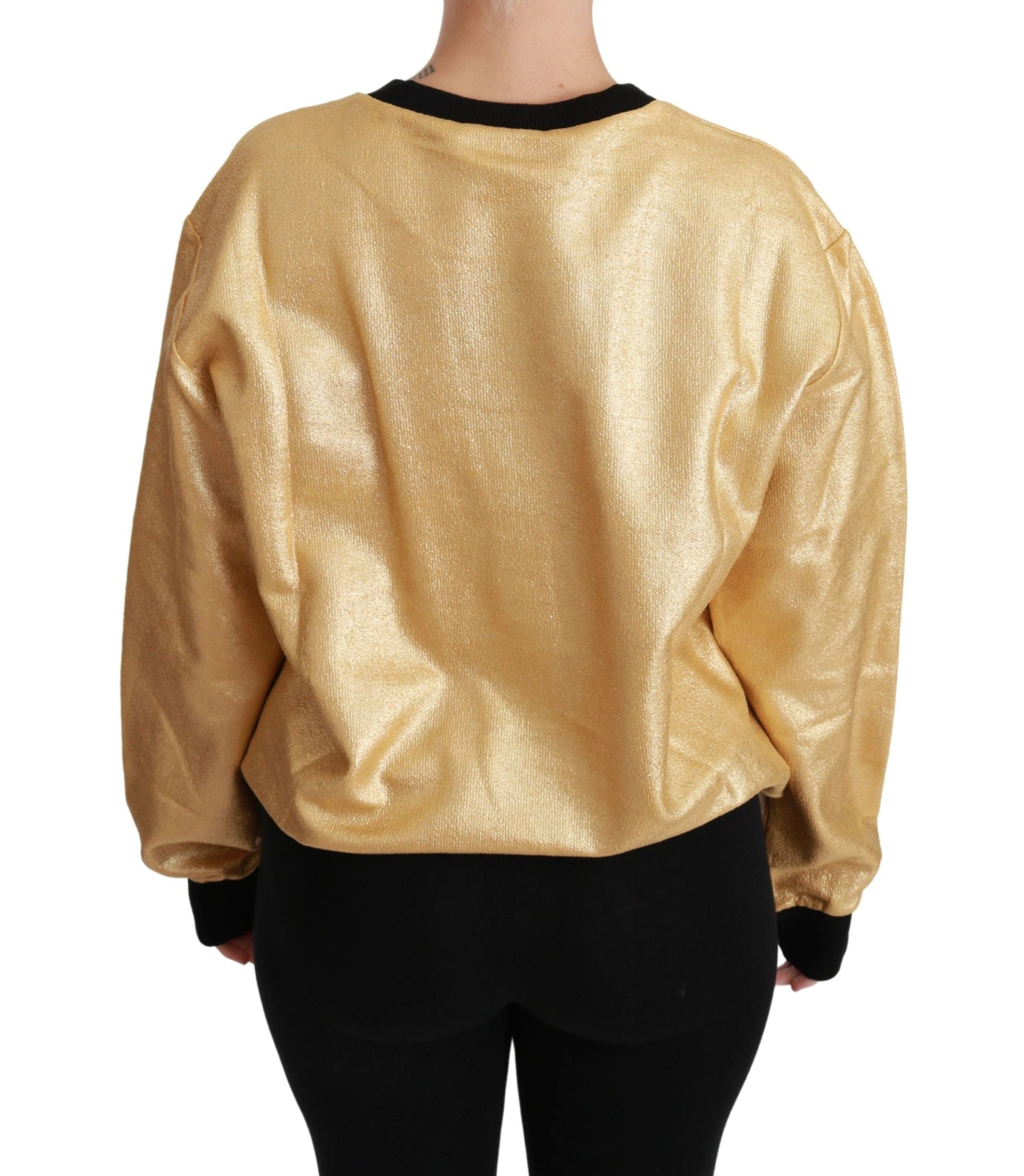 Dolce & Gabbana Gold Cotton Crewneck Pullover Sweater