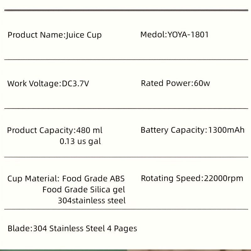 Generous 480ml Capacity: Provides enough volume to make a satisfying single serving of juice, smoothie, or protein shake.