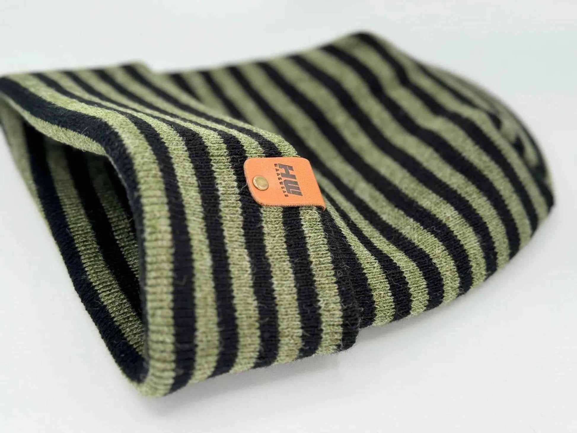 HAAKWEAR H Stitch RORO Cuffed Beanie (Patented Design) Black / Green, Made in USA