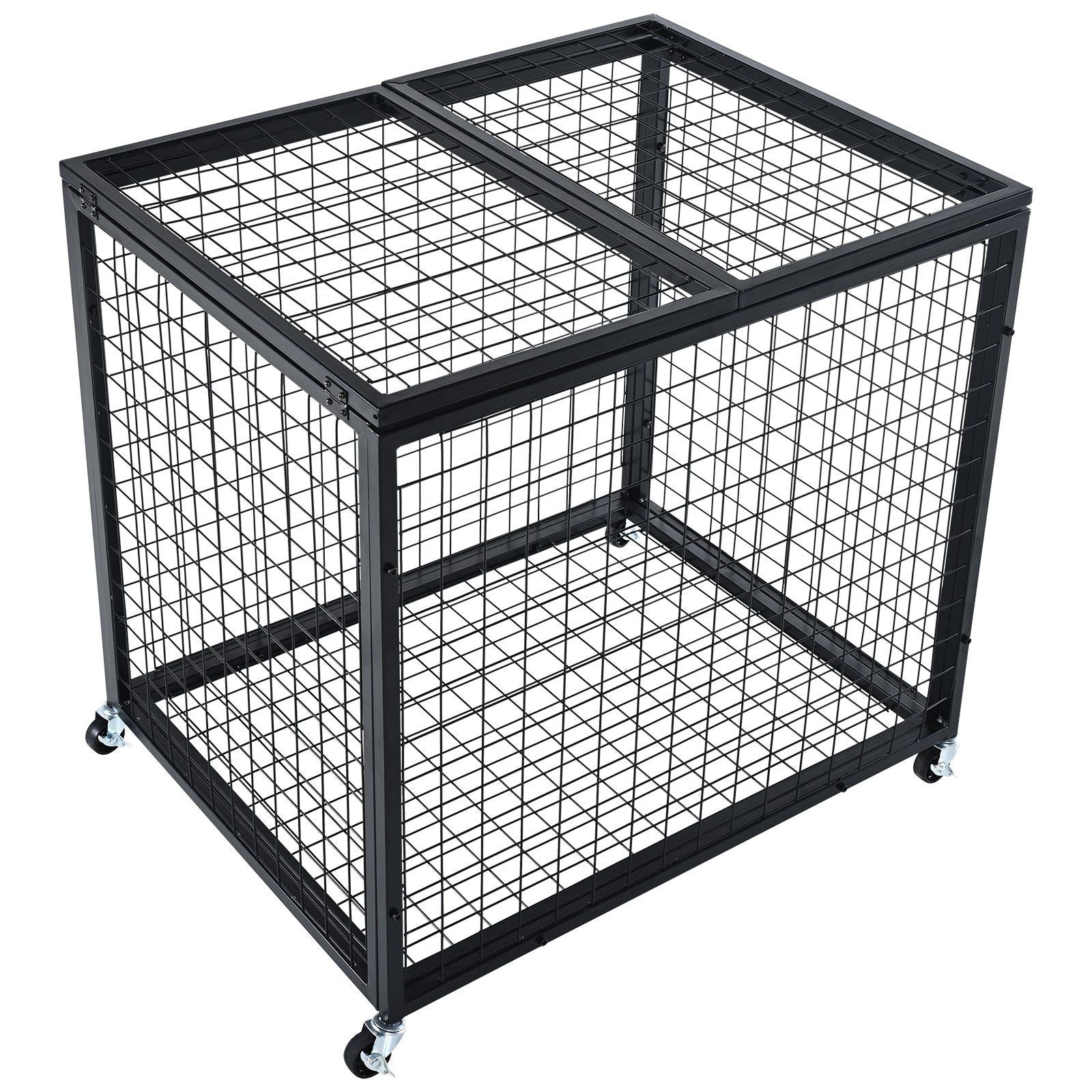 This sports equipment storage organizer features 4 swivel wheels with brakes, enabling easy mobility to any location. The wheels allow users to secure the cart with ease, enhancing the stability and safety of the cage.