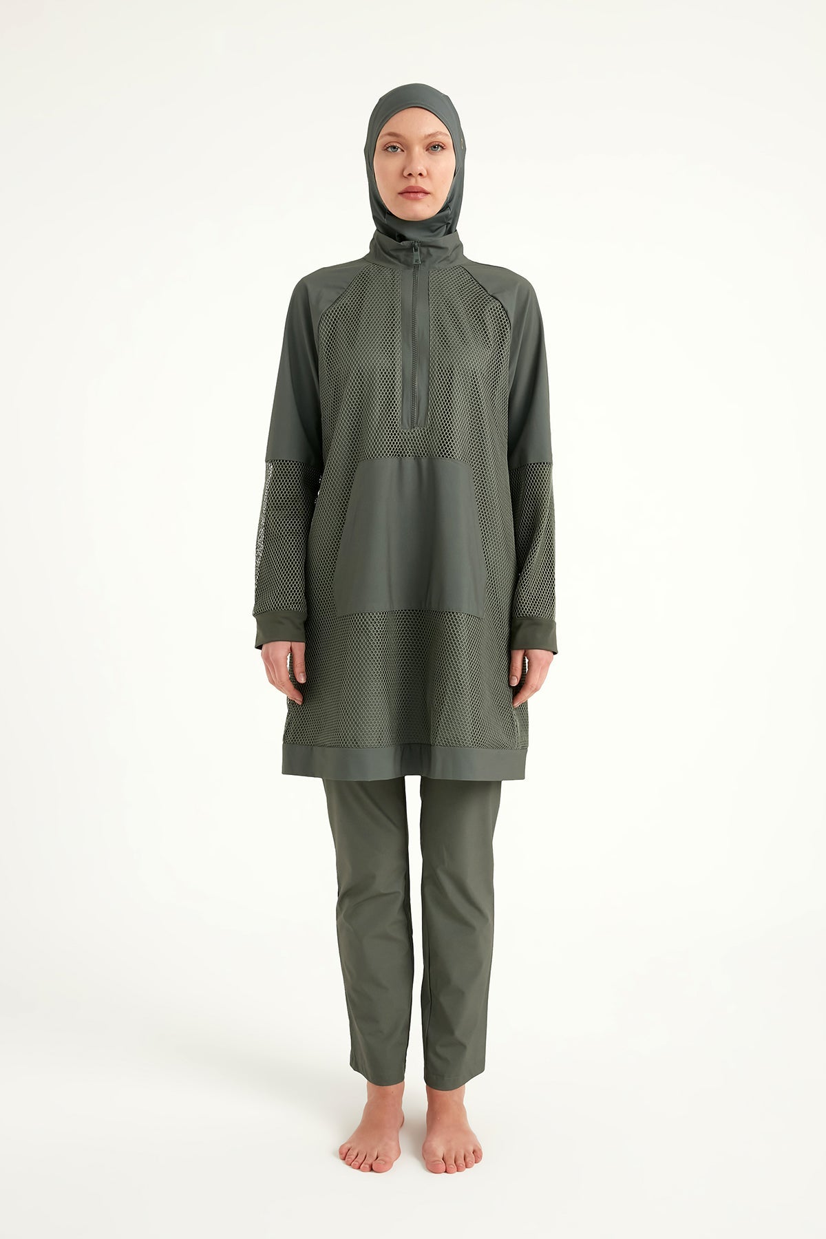 Marina Khaki Full Coverage Tulle Detail Modest Swimwear Burkini Set M2534-3