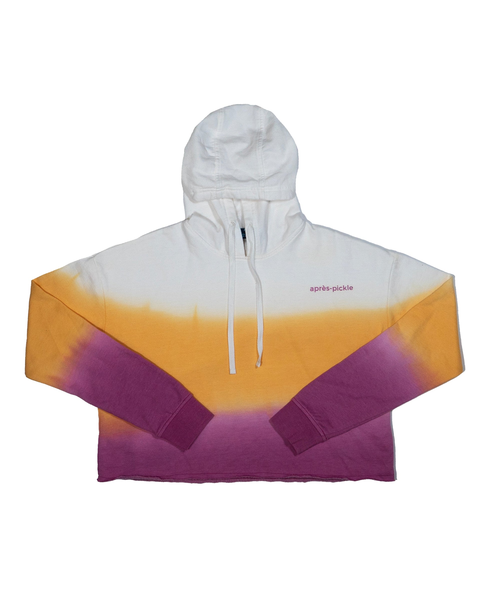 Introducing our Women's après-pickle Dip Dye Hoodie - the quintessential piece for your pickleball wardrobe. Crafted with ultra-soft fleece material, this hoodie guarantees unmatched comfort and coziness, even during intense games. Adorned with our trademarked tagline, 'après-pickle,' it captures the spirit and enjoyment shared within the pickleball community. Boasting UPF50 UV Sun Protection, you can enjoy your outdoor adventures with added peace of mind. Elevate your style and comfort with our après-pickle dip dye hoodie, the ultimate blend of fashion and functionality on and off the court.