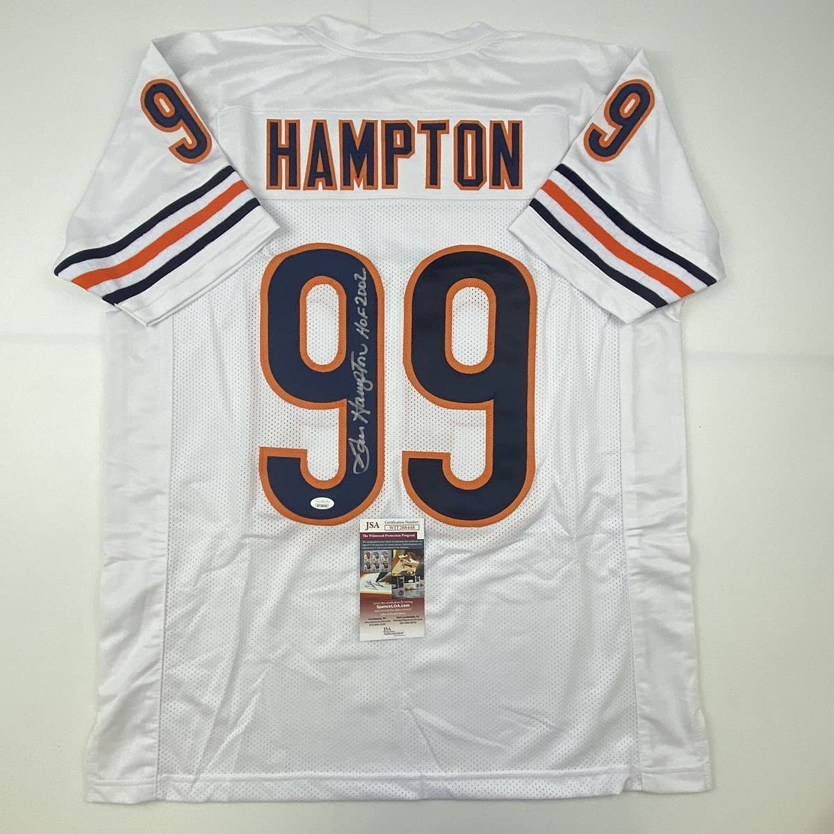 Autographed/Signed Dan Hampton HOF 2002 Chicago White Football Jersey JSA COA