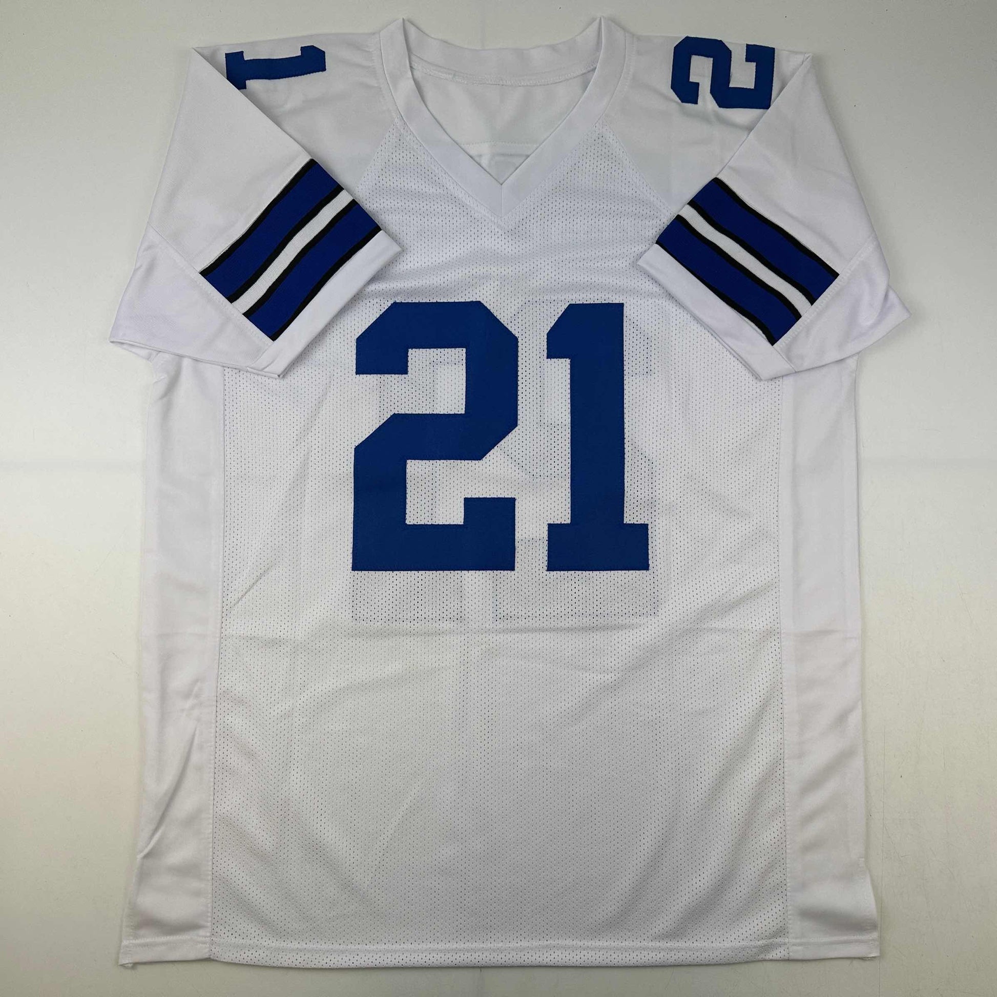 Autographed/Signed Deion Sanders Dallas White Football Jersey Beckett BAS COA