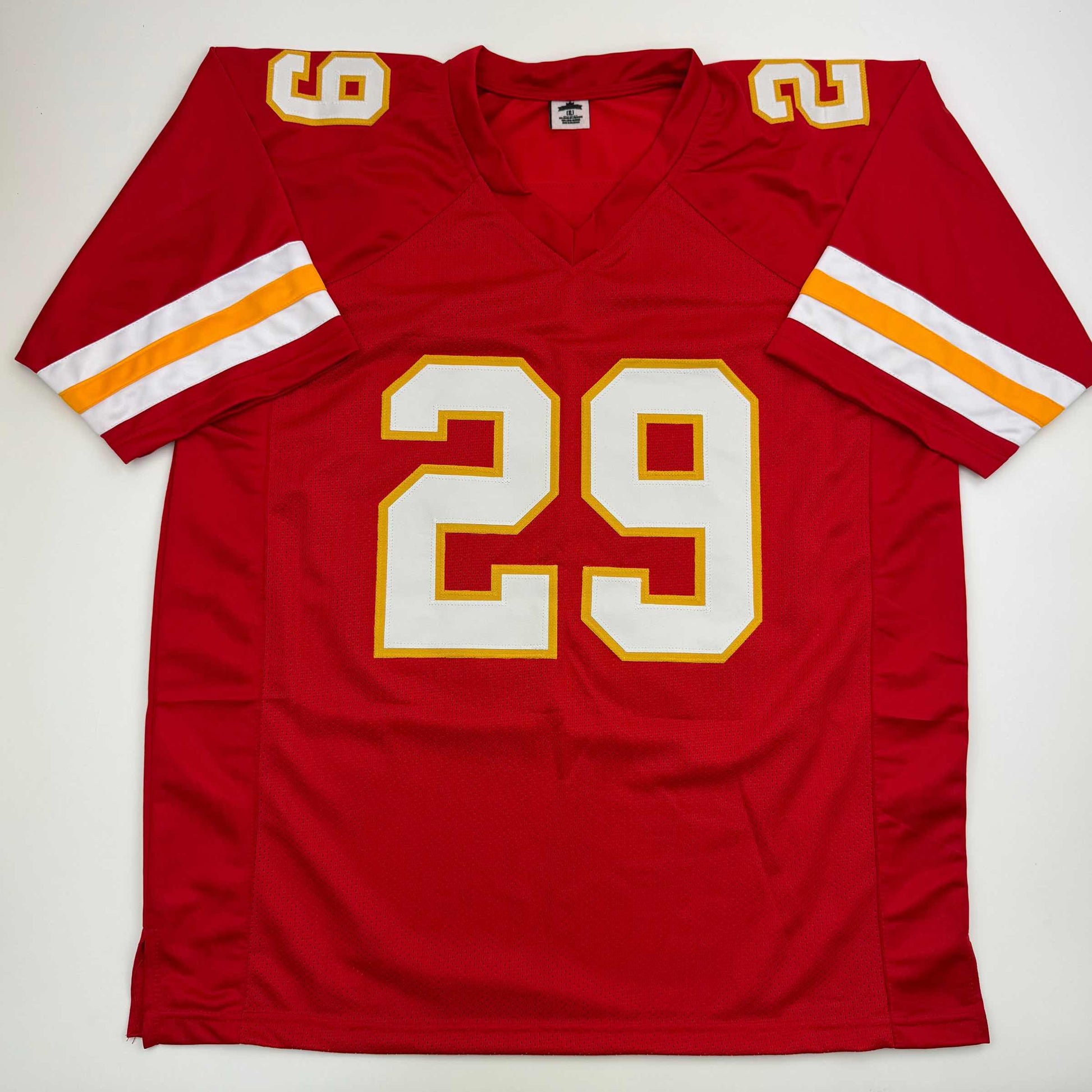 Jersey has no brand names or logos. This is a custom jersey and was not manufactured by or in any manner associated with any professional sports league or manufacturer. This custom jersey carries no professional sports league designation. The item is intended to be an autographed collectible. The custom jersey displays the name and number of the player. This item in no way is affiliated with or connected to any professional sports organization. Size is XL