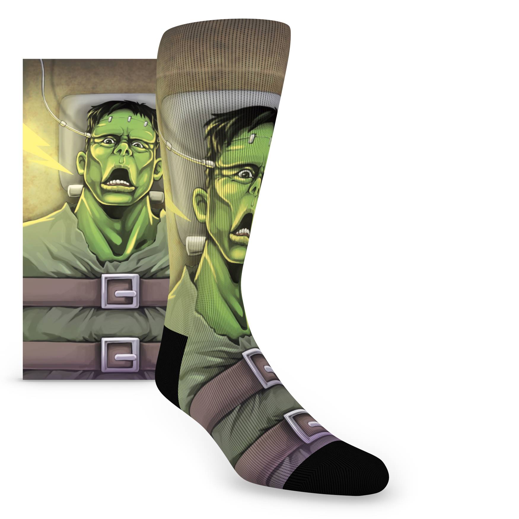 Oh no! We've created a monster-ously awesome pair of Halloween socks! These Frankenstein socks celebrate that monster that is truly in all of us, giving us long-awaited permission to stomp around and scare everyone in our sight. Grab a pair of spooky socks and get to scaring the whole town. Looking for XL socks? These are available as big and tall socks, too! This item requires 1-3 business days to custom print your socks (may take longer for large orders).