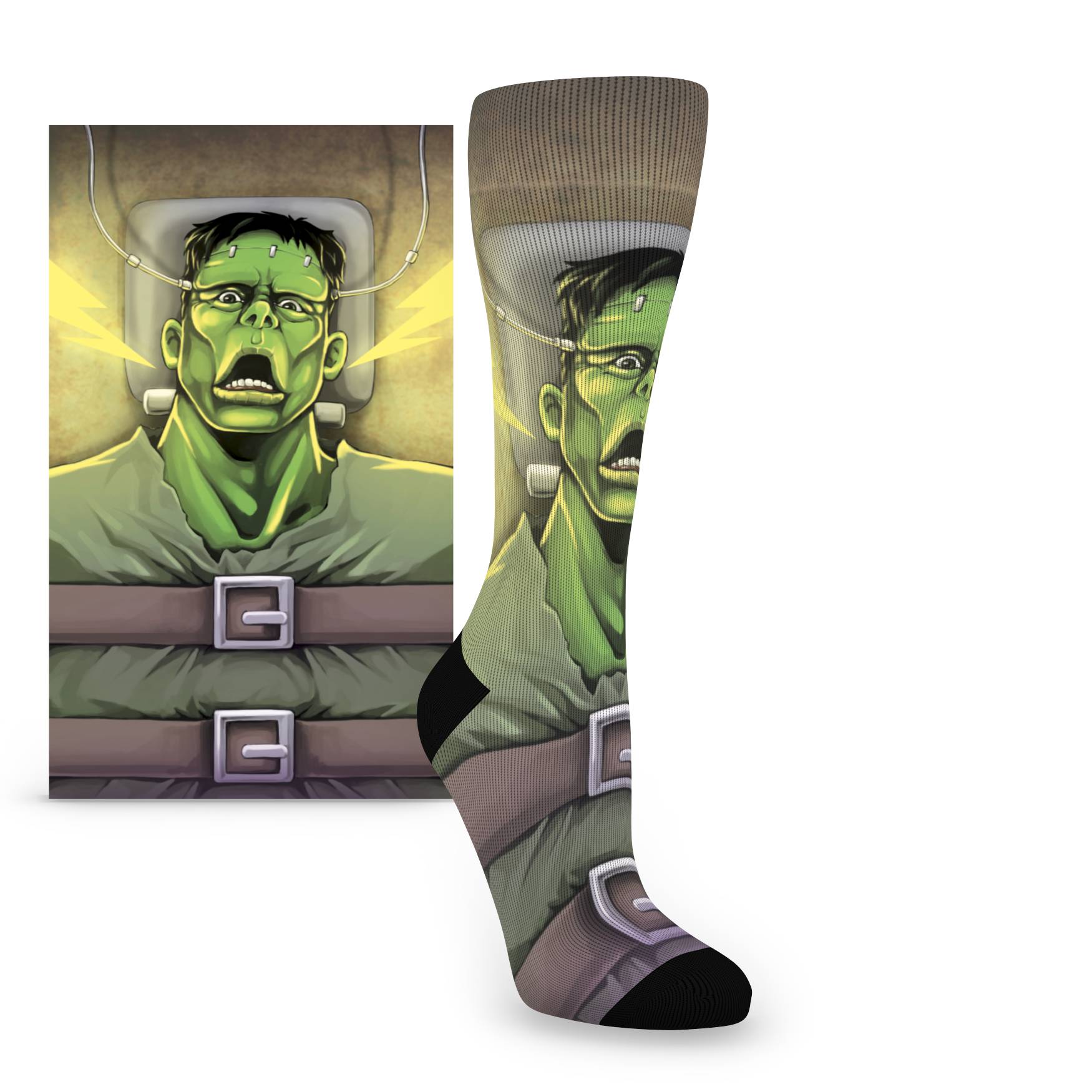Oh no! We've created a monster-ously awesome pair of Halloween socks! These Frankenstein socks celebrate that monster that is truly in all of us, giving us long-awaited permission to stomp around and scare everyone in our sight. Grab a pair of spooky socks and get to scaring the whole town.