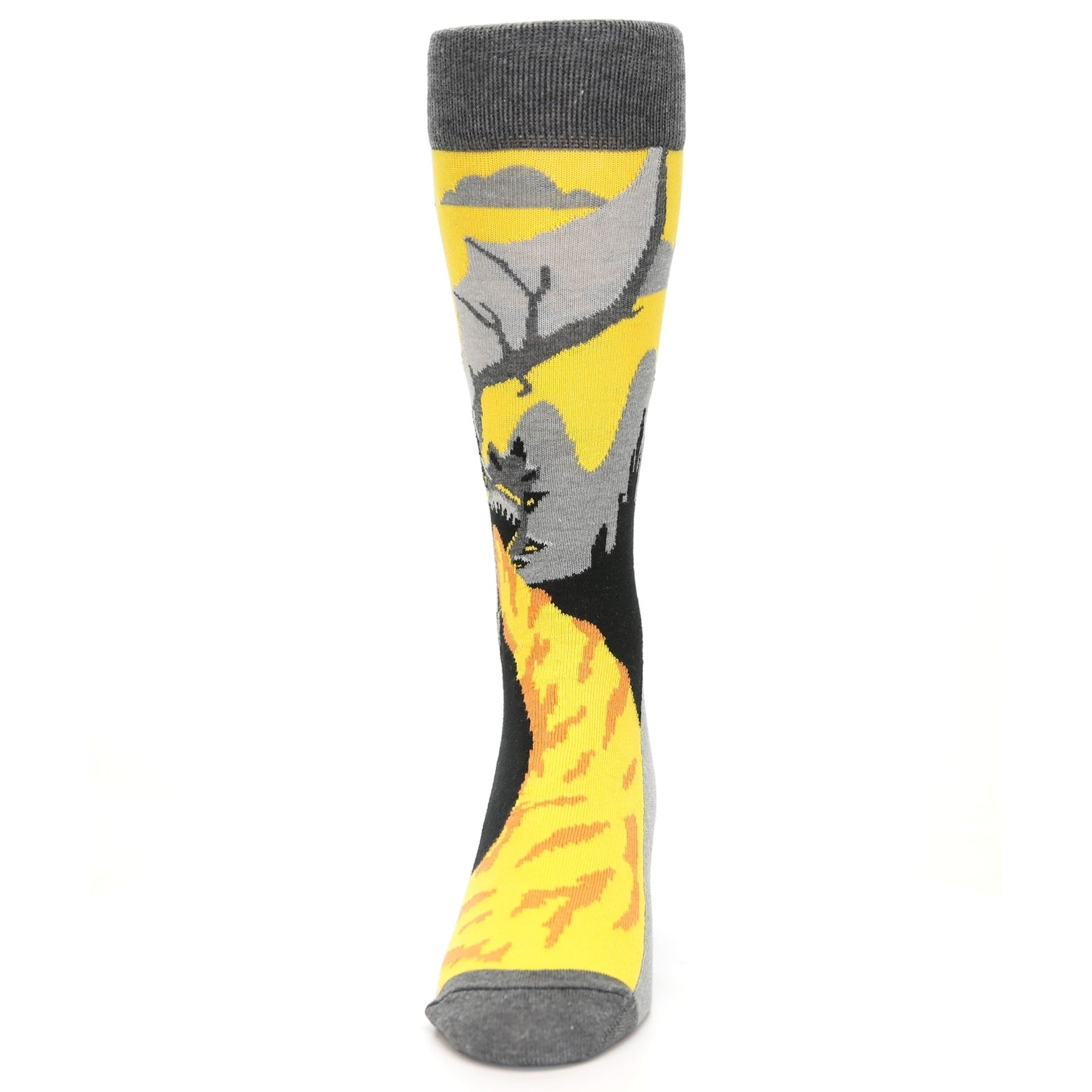 Gray Orange Dragon Socks - USA Made - Men's Novelty Socks